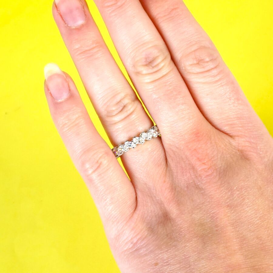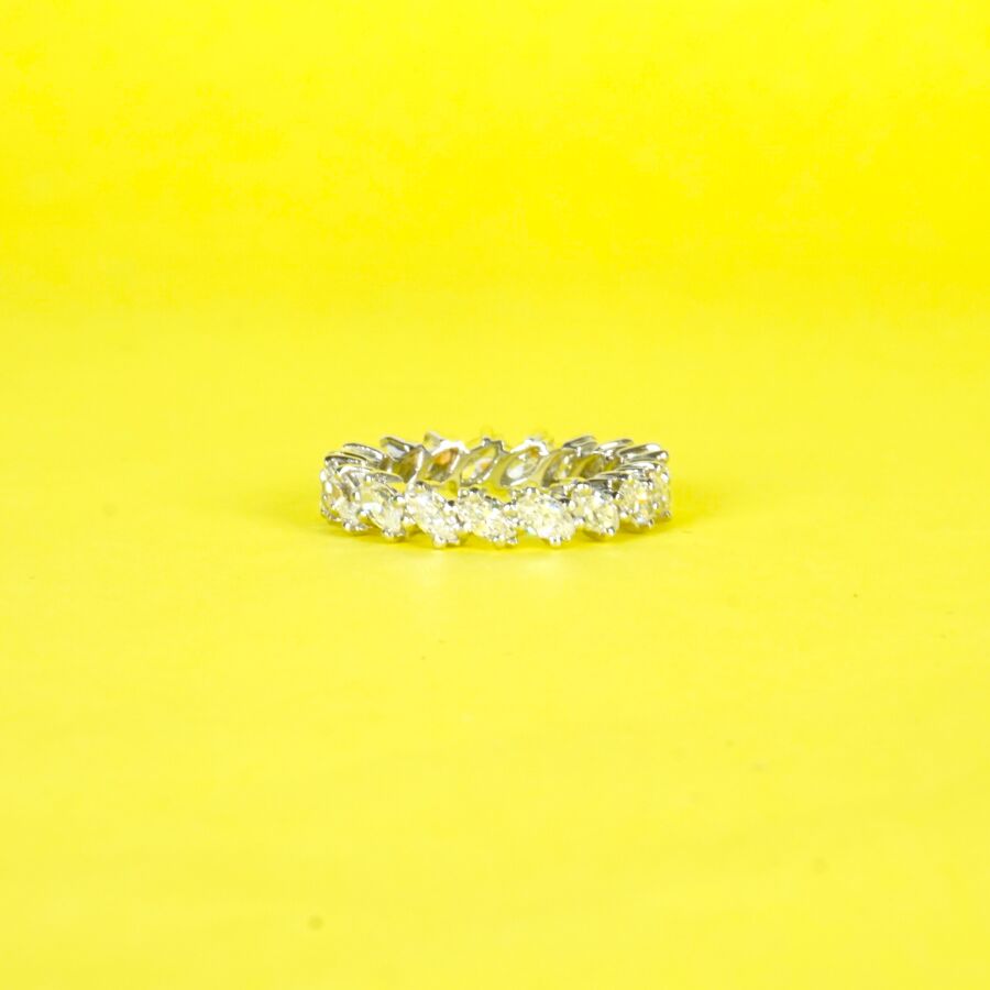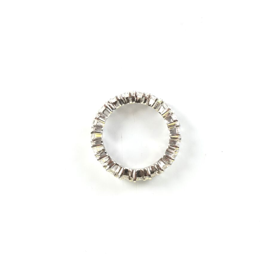 Alliance rivière dite américaine en platine (850/oo), sertie de 19 diamants taille navette (D. 4.5 x 2 mm), TDD. 49.5/50. Larg. 4mm. Poids brut : 5.2 g environ.
