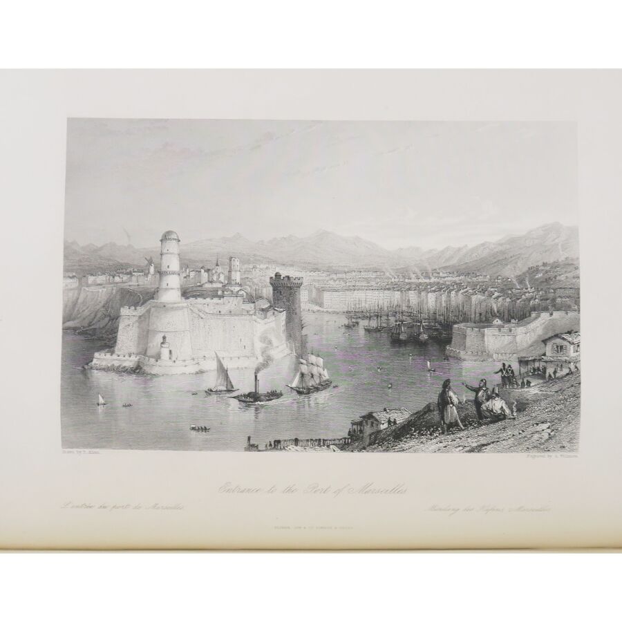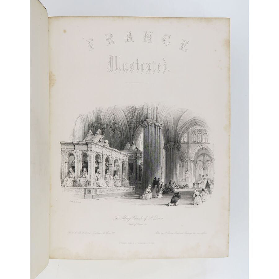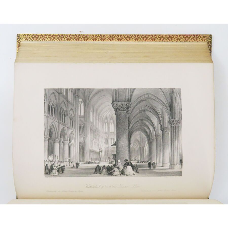 ALLOM (Thomas) & DELILLE (Charles Jean). France illustrated. Londres, Fisher, sd [1841]. 3 tomes reliés en un fort volume grand in-4, maroquin rouge, dos à nerfs richement orné, large bordure dorée encadrant les plats, filet doré sur les coupes, large dentelle intérieure dorée, tr. dorées (reliure anglaise de l'époque).