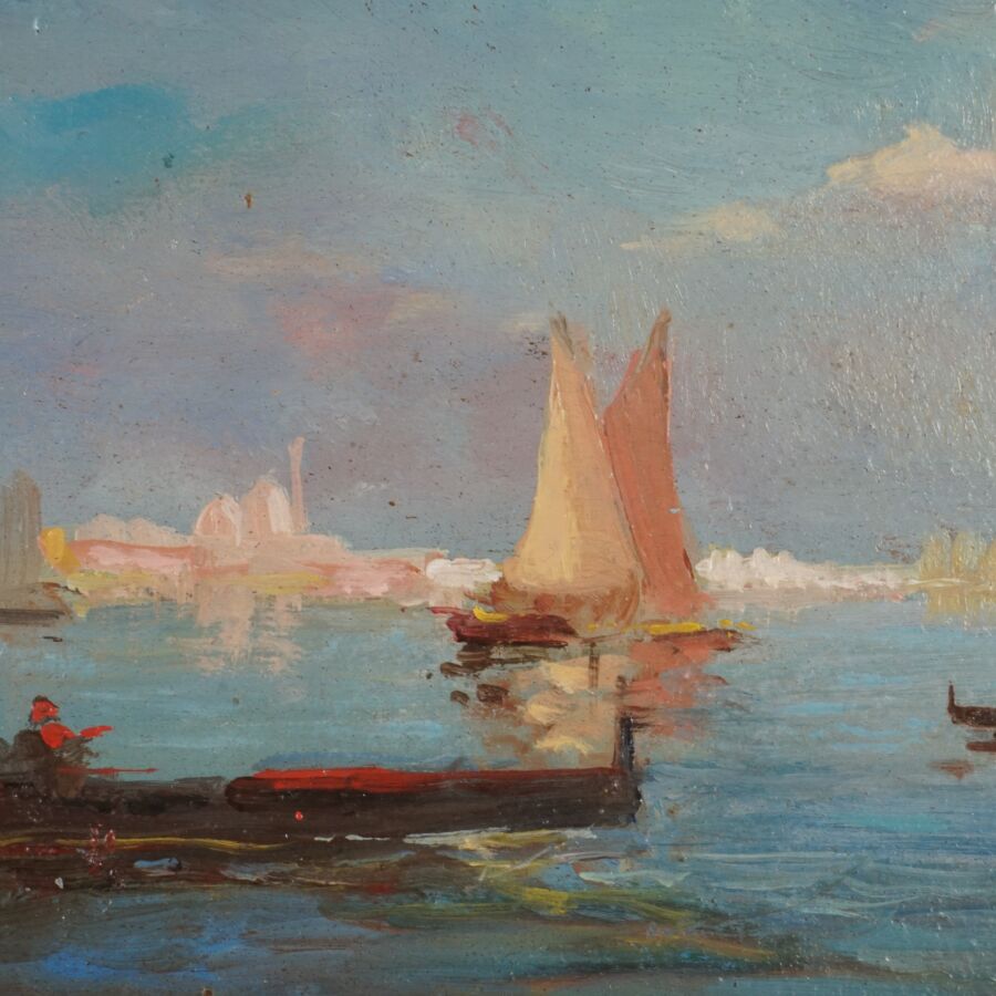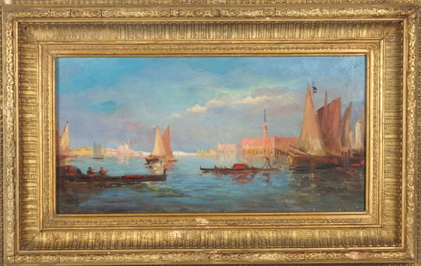 Alphonse RAY (1865-1938), "Venise, le Grand Canal", huile sur panneau, signée en bas à gauche, 19 x 36 cm.