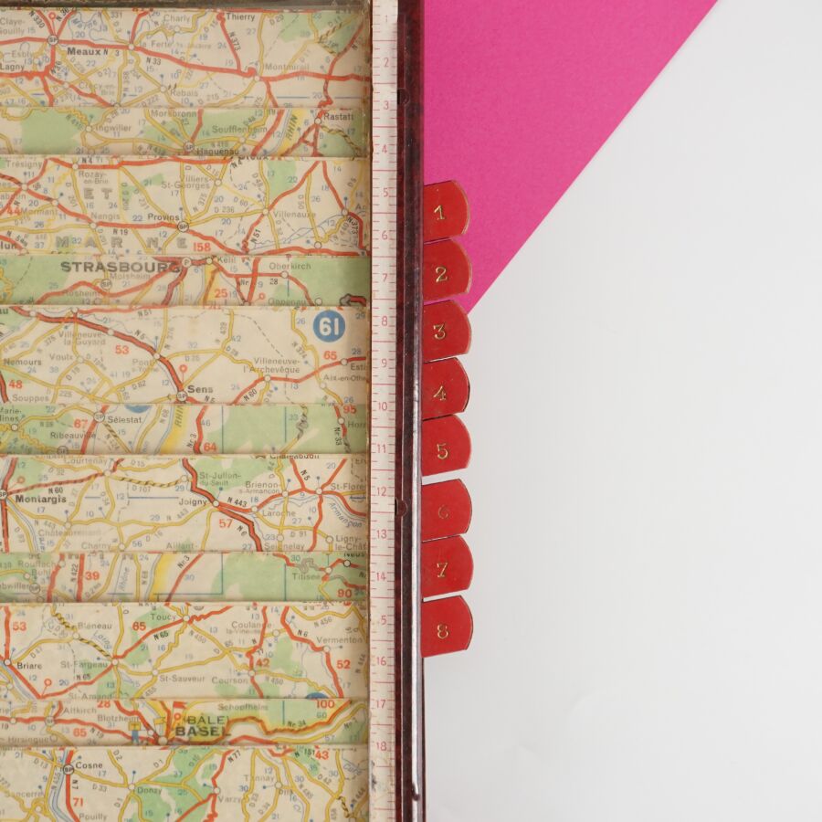 Altas routier en bakélite à l'imitation de l'écaille, avec languettes rouges latérales, circa 1940, 33.5 x 19 cm (quelques usures).