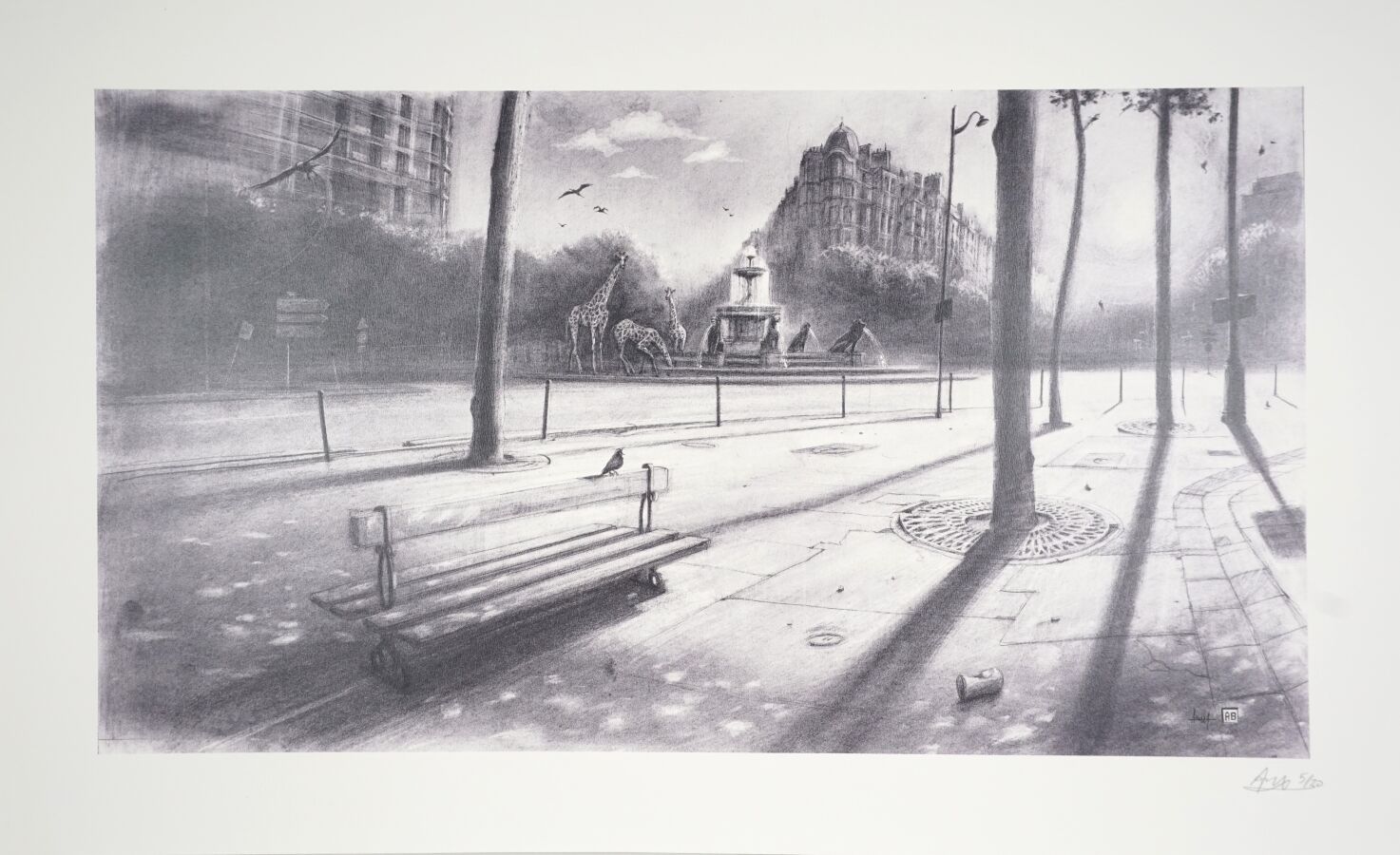 Amaury BRUMAULD (XX-XXIe), "Les girafes", impression Fine Art édition limitée 20 exemplaires, signée et numérotée 5/20 en bas à droite, 48 x 62 cm.