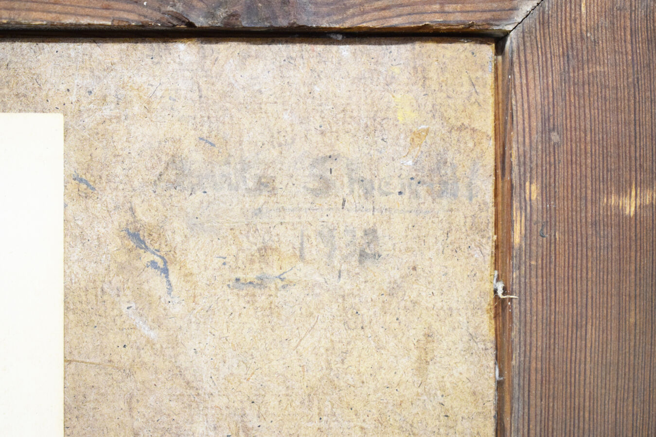 Amrita SHER-GIL (1913-1941), "Portrait d'Edith", 1932, huile sur toile marouflée sur carton, 43.5 x 60.8 cm, signée au dos, datée et une partition collée à l'arrière de Thaïs de Jules Massenet. (légère déchirure dans le coin en haut à droite, vernis moderne, encrassements)