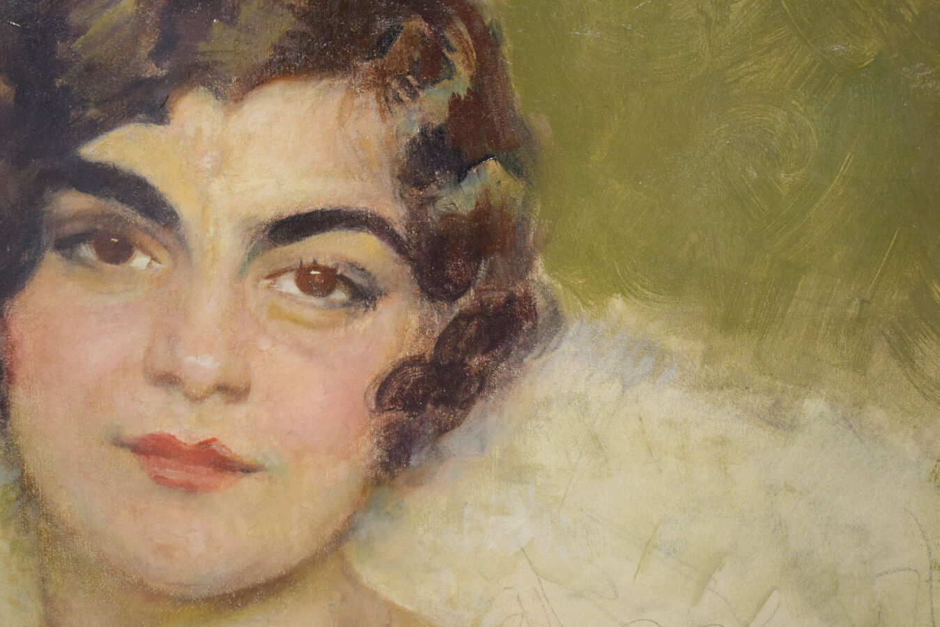 Amrita SHER-GIL (1913-1941), "Portrait d'Edith", 1932, huile sur toile marouflée sur isorel, 60,5 x 44 cm, signée au dos, datée et une partition collée à l'arrière de Thaïs de Jules Massenet.