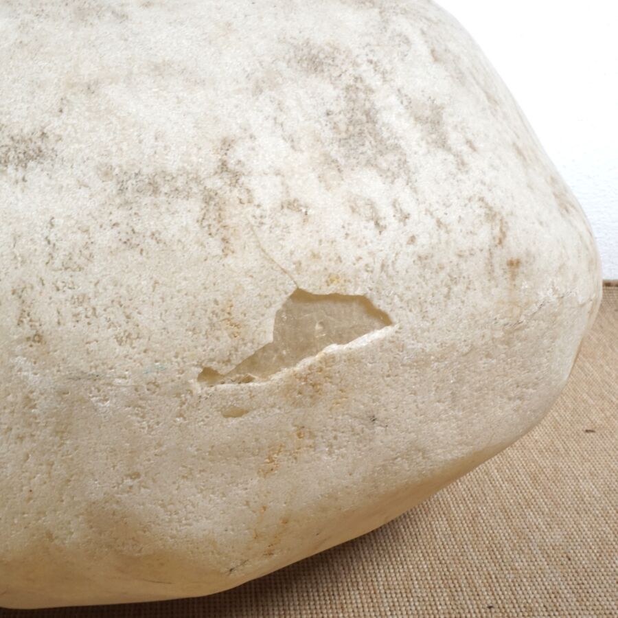 André CAZENAVE (1928-2003), Lampe modèle "Dora", fibre de verre translucide à application de poudre de marbre couleur gris-beige, grand modèle, 39 x 80 cm environ (accident).