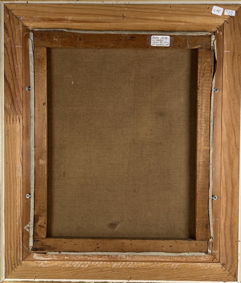 André DAVIDS (XIX-XXe), "Intérieur", huile sur toile signée en bas à gauche, 46.5 x 38 cm (légères écaillures et une petite restauration en bas au centre).