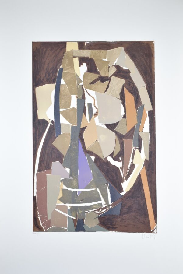 André LANSKOY (1902-1976), "Composition marron", lithographie, signée en bas à droite dans la marge, numérotée en bas à gauche, 43.8 x 67.8 cm