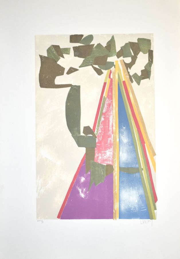 André LANSKOY (1902-1976), "Composition pyramidale", lithographie, signée en bas à droite dans la marge, numérotée en bas à gauche, 43.8 x 67.8 cm