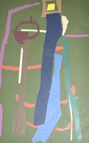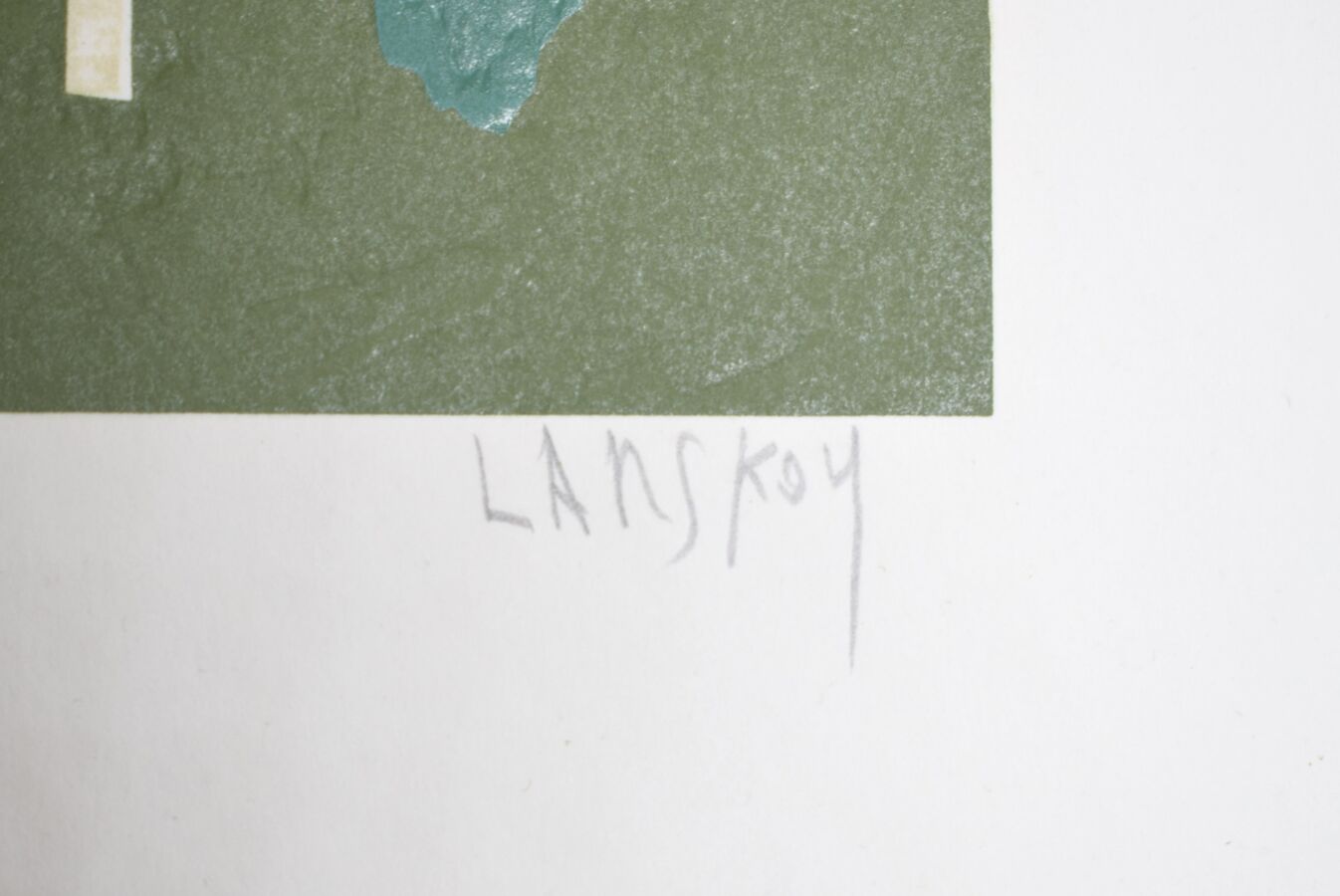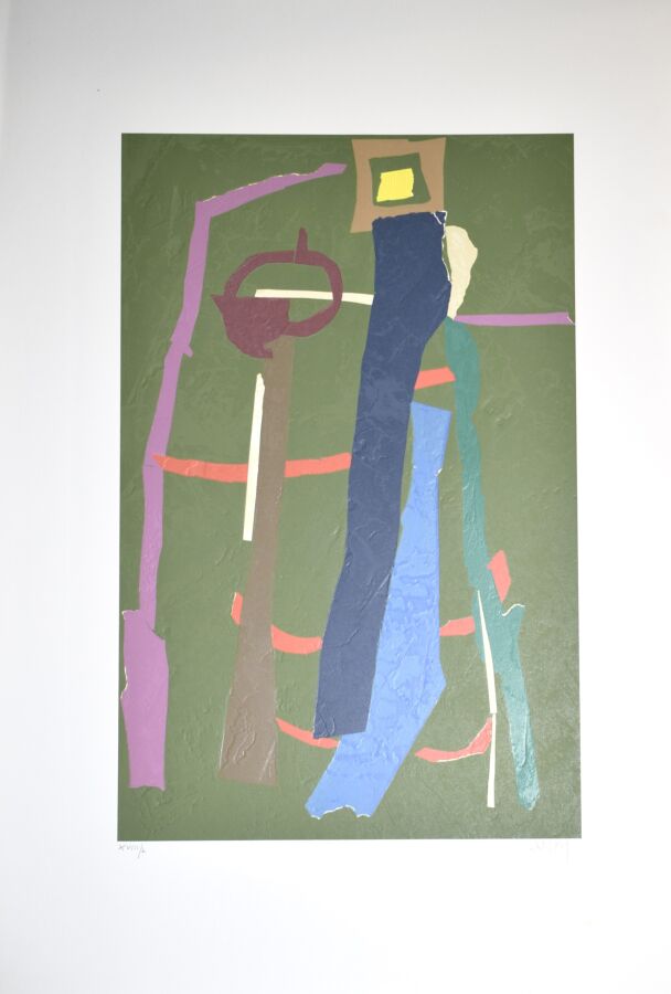 André LANSKOY (1902-1976), "Composition sur fond kaki", lithographie, signée en bas à droite dans la marge, numérotée en bas à gauche, 43.8 x 67.8 cm