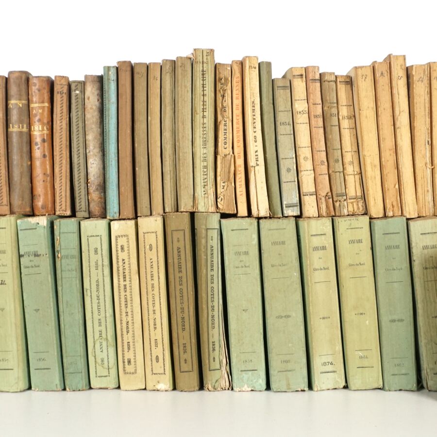 - Annuaire des Côtes-du-Nord, 16 volumes brochés : 1836 (en 2 ex.), 1837, 1839, 1846, 1848, 1852, 1856, 1857, 1858, 1860, 1862, 1864, 1865, 1869, 1874.