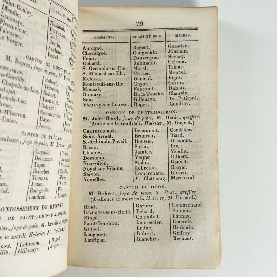 - Annuaire du département d'Ille-et-Vilaine, 7 vol. brochés : 1820 à 1823, 1837, 1842, 1860.