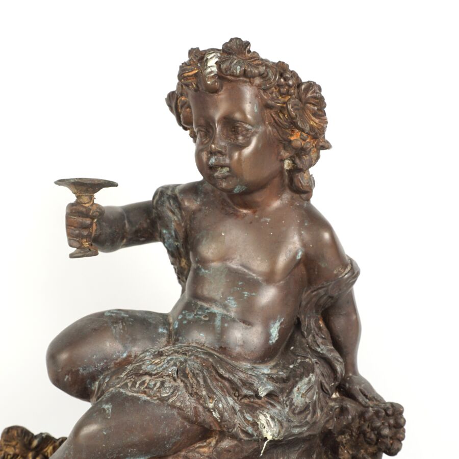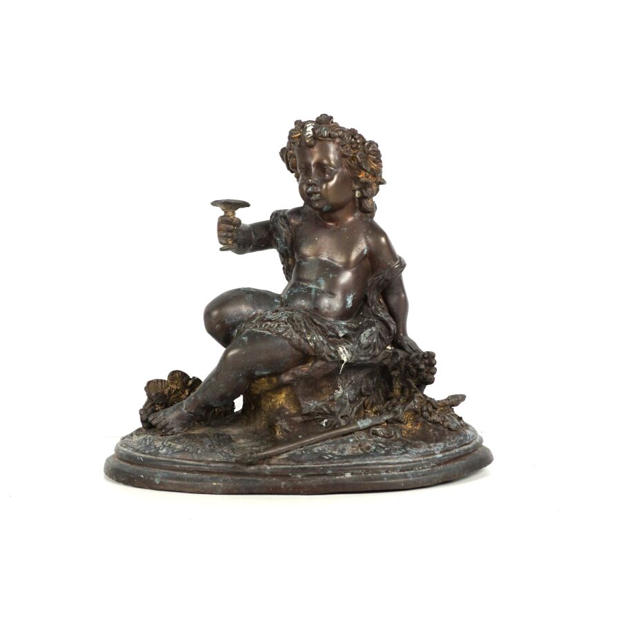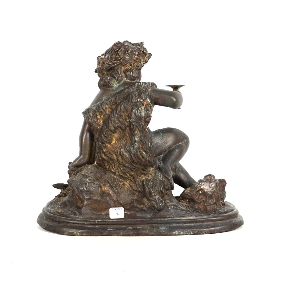 Anonyme (XIXe), "Jeune Bacchus assis sur un rocher", sculpture en bronze et alliage non signée, H. 31 cm. L. 35 cm (rayures, traces d'oxydation).