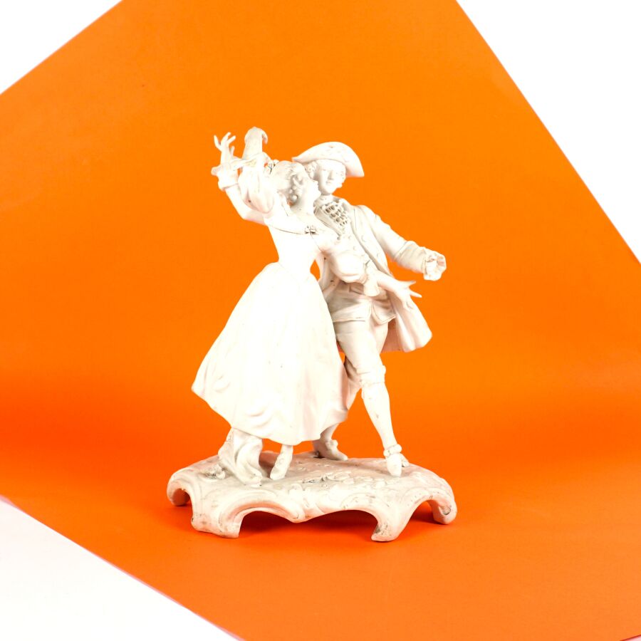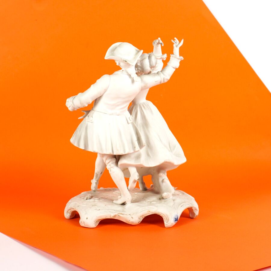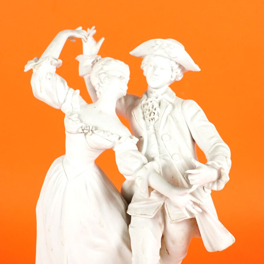 Anonyme (XXe), "La danse", groupe en biscuit figurant un couple de danseurs, H. 20 cm (petits accidents).
