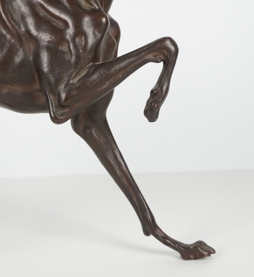 Anonyme (XXe), "Lévrier", sujet en bronze à patine brune, fonte d'édition, H. 27 cm. L. 34 cm (sans socle).