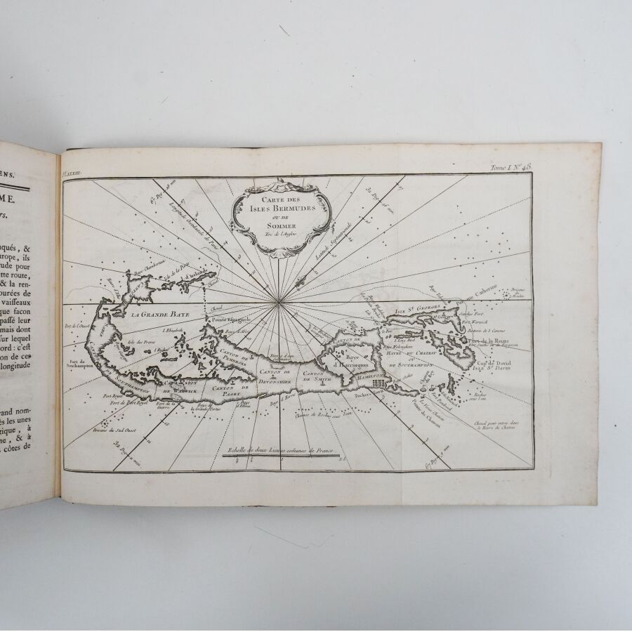 Édition ornée d'un titre gravé à la date de 1768, d'une vignette dans le texte gravée en taille-douce par Choffart, de 34 planches hors texte gravées, plusieurs dépliantes, montrant des cartes et des plans, et de culs-de-lampe.