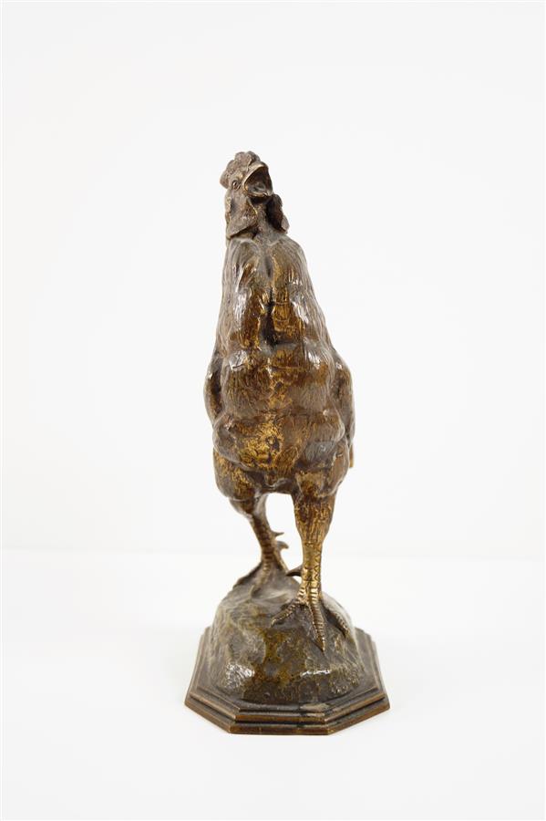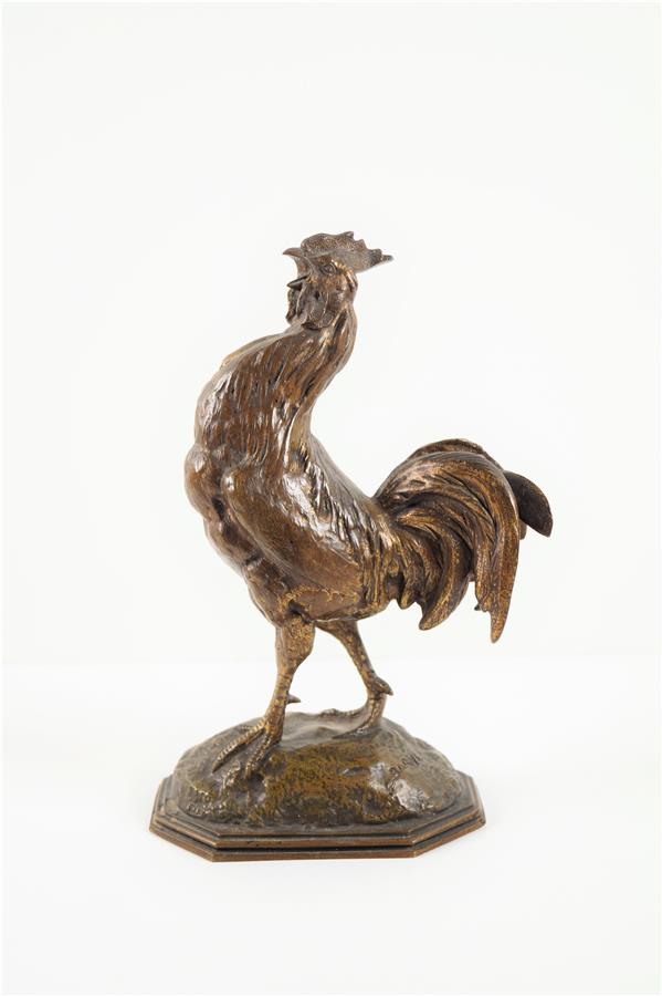 Antoine Louis BARYE (1796-1875), "Coq chantant", bronze à patine brune signé sur la terrasse, H. 22 cm.