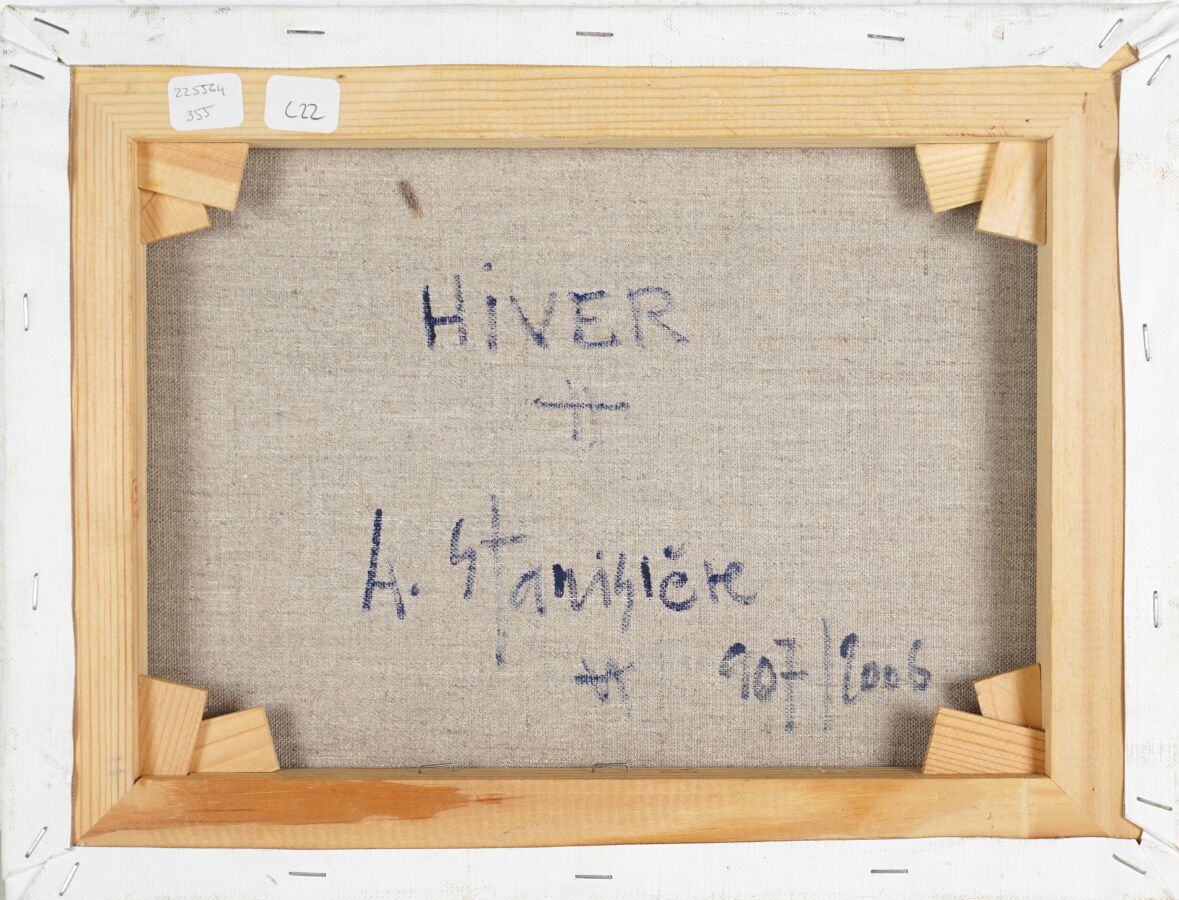Antoine STANISIERE (1934-2018), "Hiver" 2006, huile sur toile signée en bas à droite, contresignée, datée et titrée au dos, 27 x 35.2 cm.
