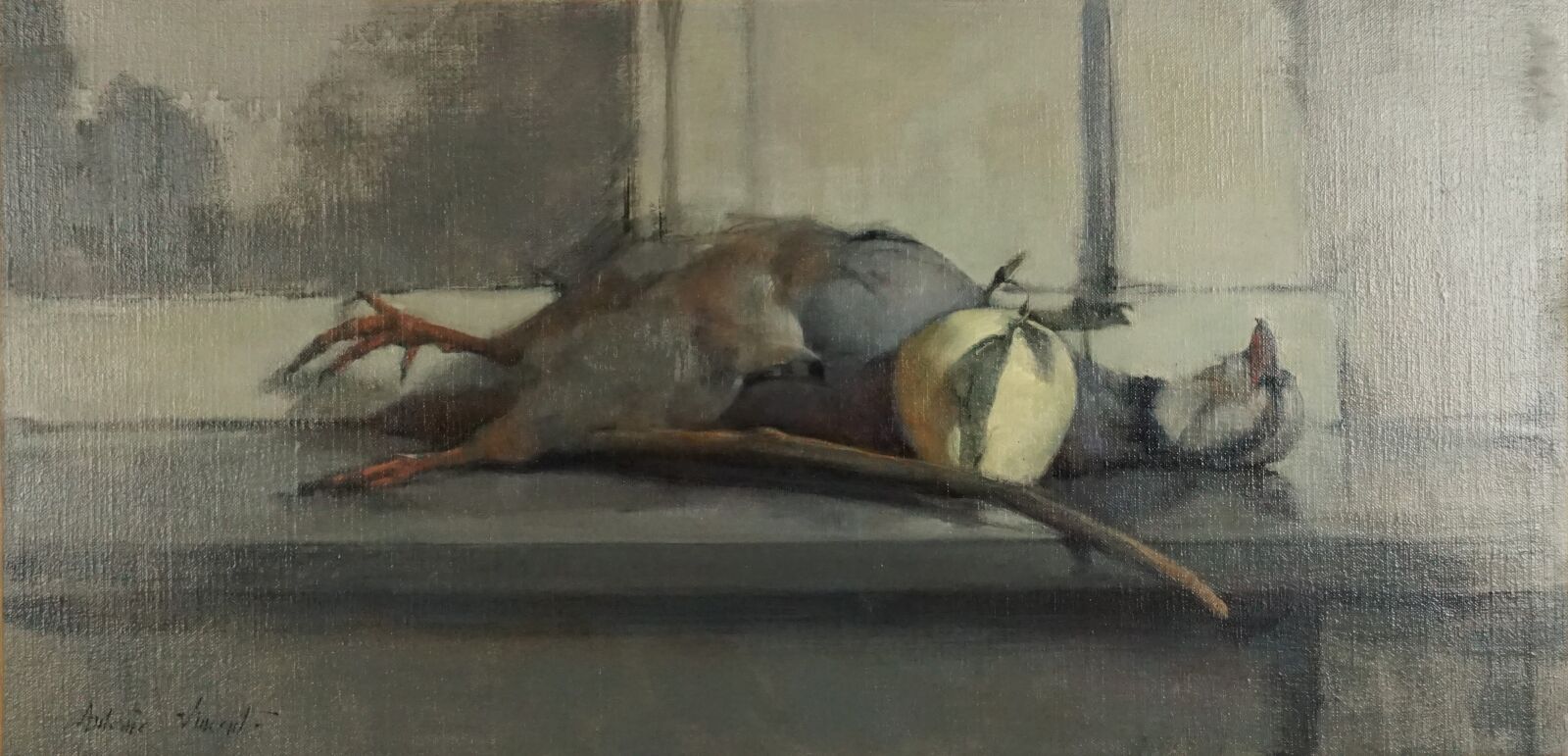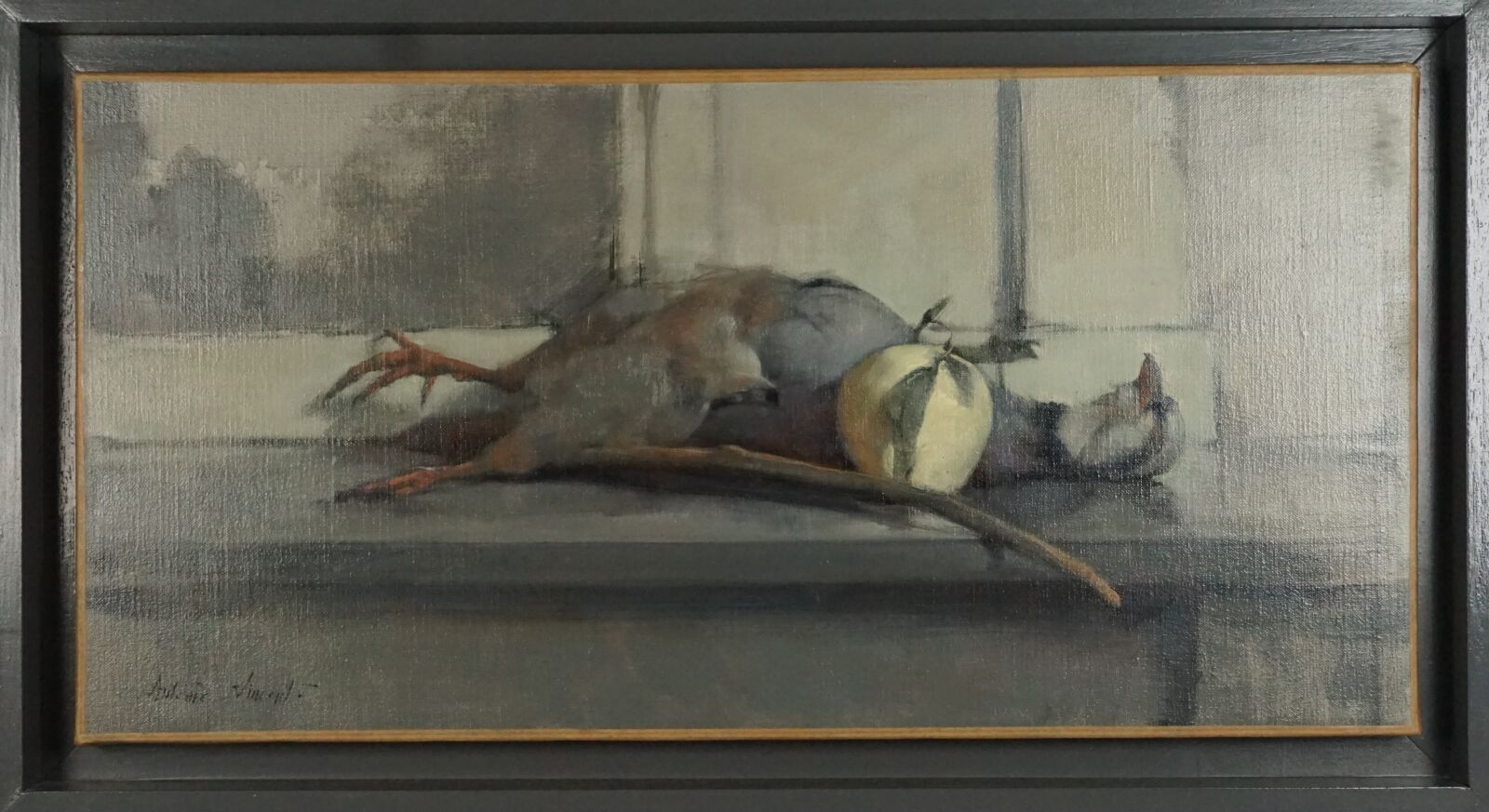 Antoine VINCENT (1956), "La Perdrix", huile sur toile, signée en bas à gauche, 30 x 60 cm.