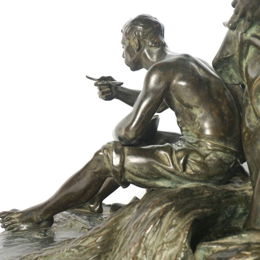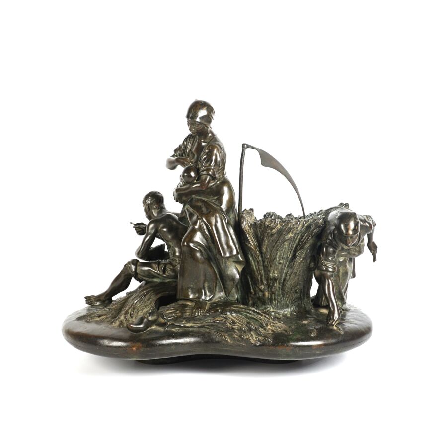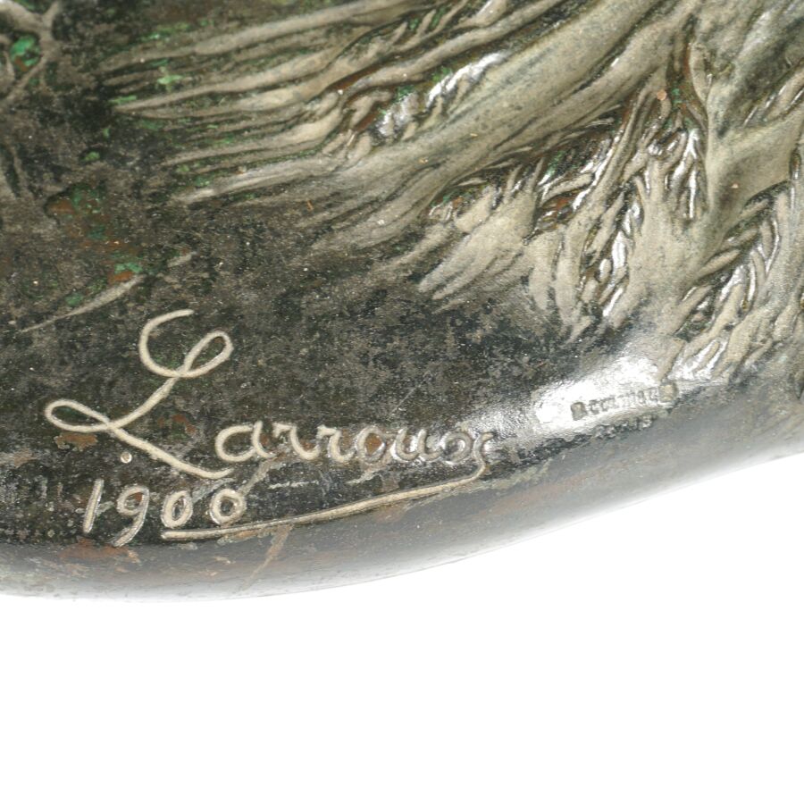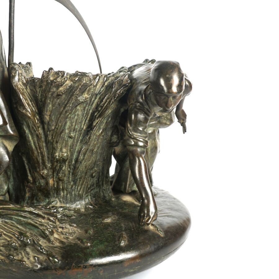 Antonin LARROUX (1859-1913), "La vie paysanne" 1960, Jardinière en bronze à patine brune, signé et daté sur la terrasse, 53 x 43 x 32 cm.