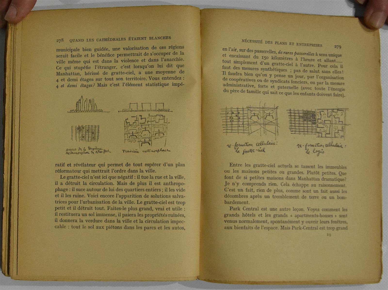 [ARCHITECTURE] - LE CORBUSIER - La Ville Radieuse - Boulogne ; Editions de l'Architecture d'aujourd'hui, 1933 - 1 volume In-4° oblong - Frontispice en noir d'après Le Corbusier, très nombreuses illustrations en noir : in et hors-texte : shémas, croquis, dessins, plans, photographies, etc. - Reliure éditeur demi-toile blanche, couverture cartonnée imprimée (très légèrement défraichie) - Très bon intérieur, bon exemplaire, recherché - On y joint : DU MEME - Quand les cathédrales étaient blanches. Voyage au pays des timides - Paris ; Plon, sans date [1937] - 1 volume In-8° broché - 45 croquis in-texte - Couverture imprimée, illustrée au 1er plat (de petits manques et déchirures, notamment au coin supérieur du 2nd plat, 1ère charnière renforcée - Rare et bon ensemble.