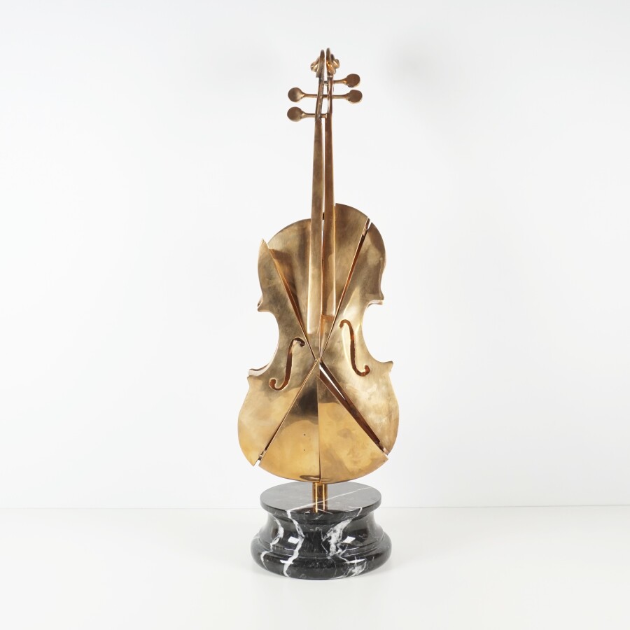 ARMAN (1928-2005) : Violon alto Prisme - 2004 Épreuve en bronze découpé à patine dorée sur un socle de marbre noir. Trewell éditeur signé en bas à droite, numéroté 16/30 en bas au dos H. 65 cm.