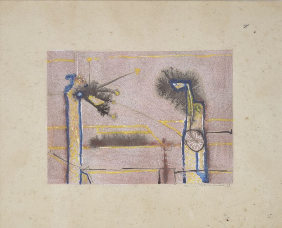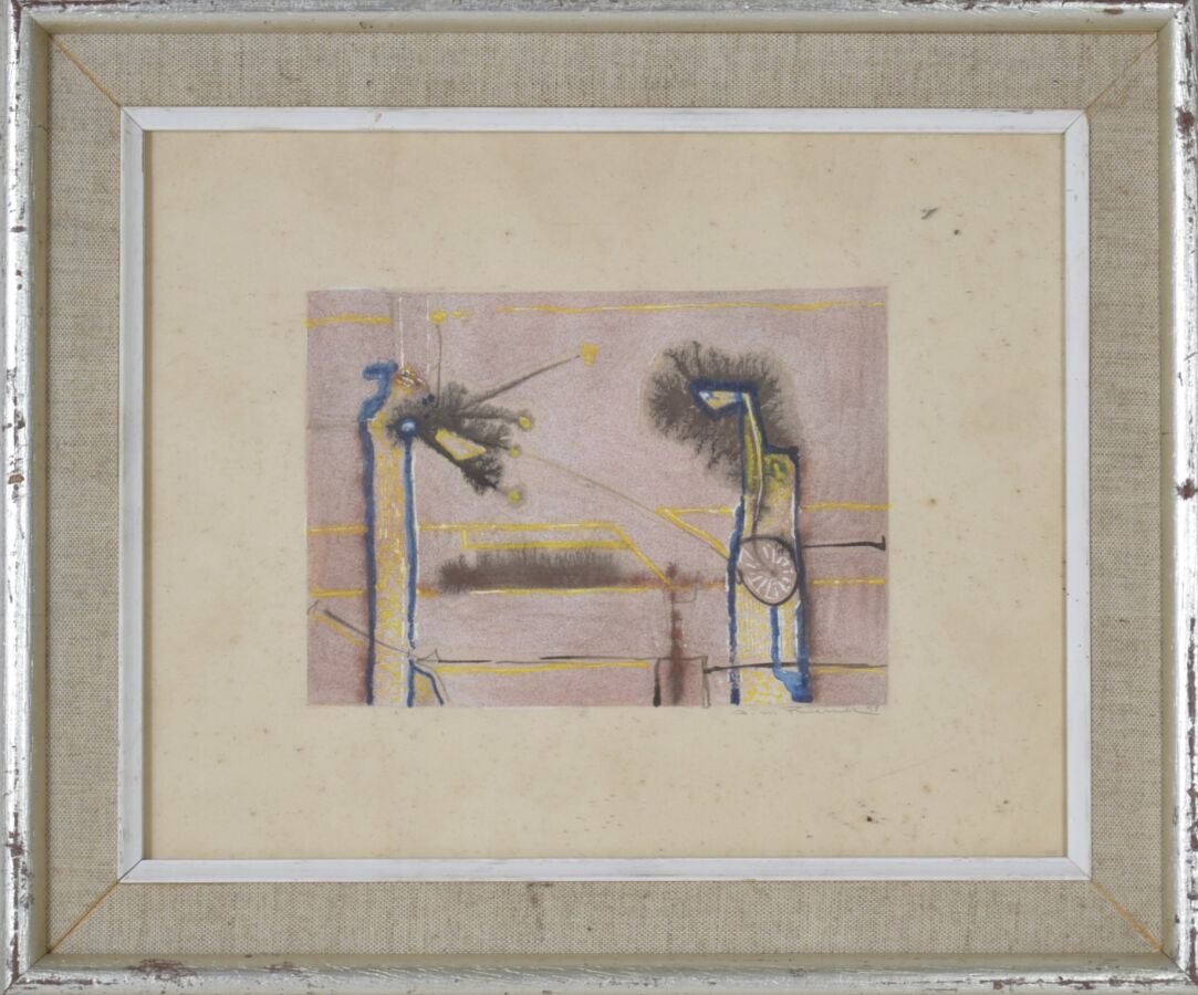 Arthur Maria RENER (1912-1991), "Composition" gouache sur papier, signée et datée dans la marge en bas à droite, 12.5 x 17.5 cm
