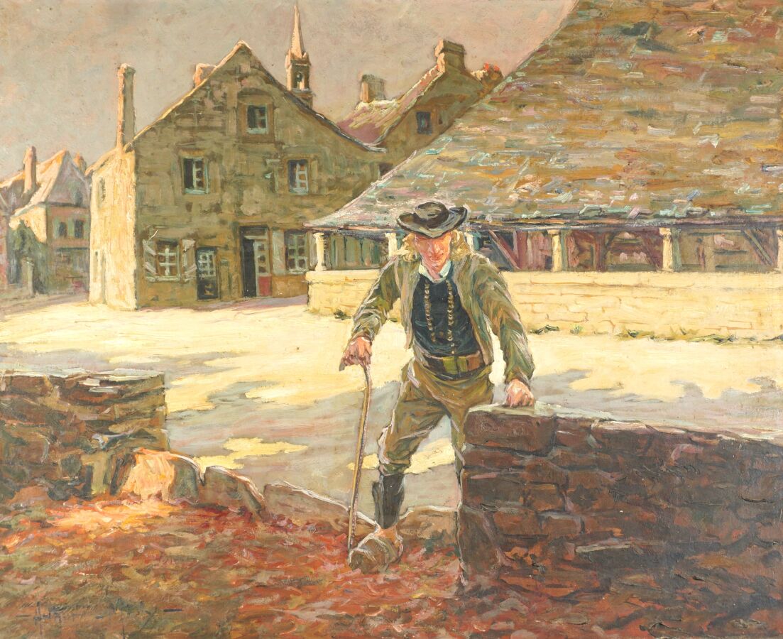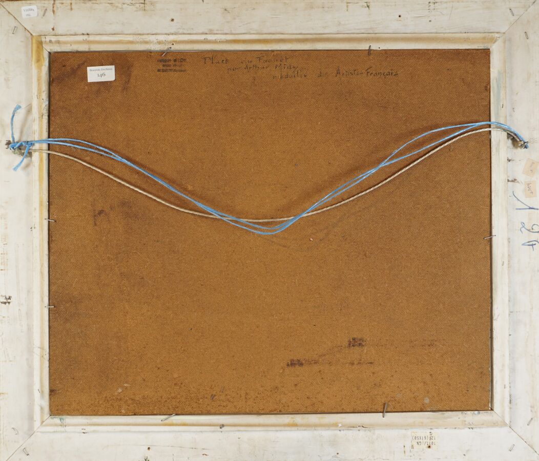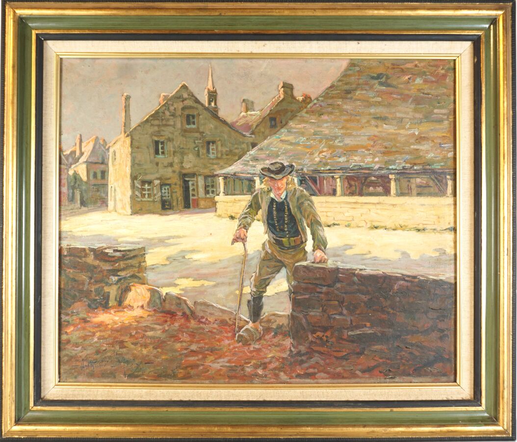 Arthur MIDY (1887-1944), "Place du marché au Faouët", huile sur isorel signée en bas à gauche, située et contresignée au dos, 50 x 60.8 cm.