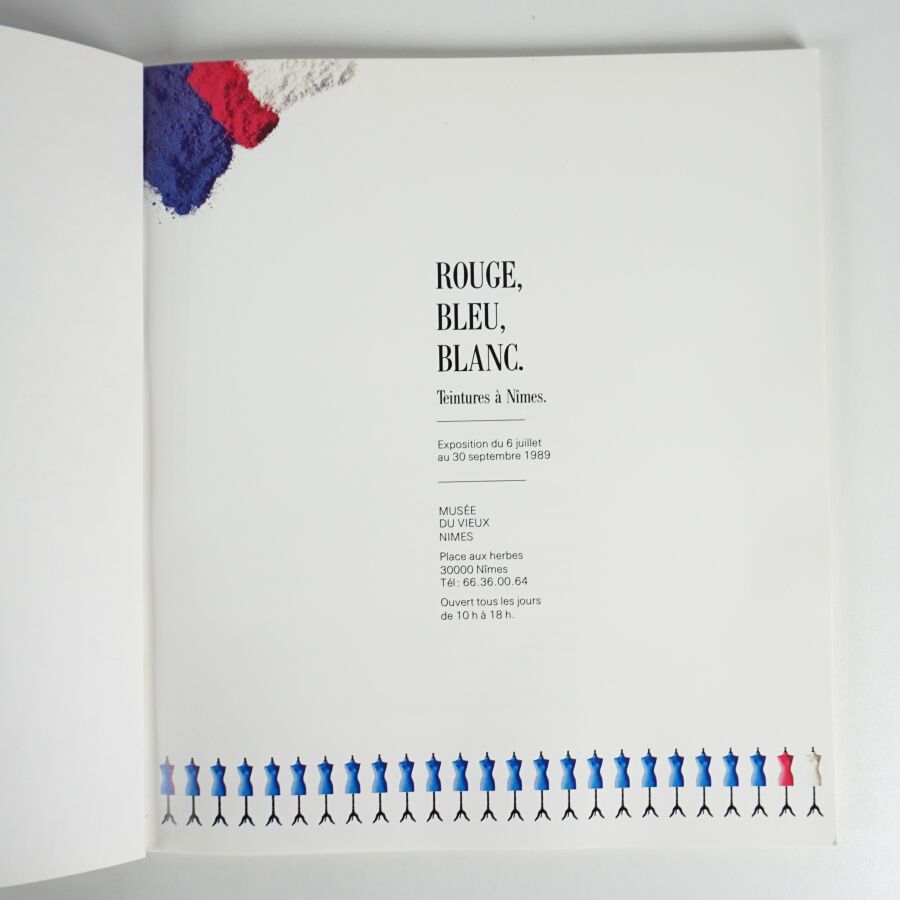 - Rouge, Bleu, Blanc. Teintures à Nîmes. Exposition du 6 juillet au 30 septembre 1989. In-4 carré broché. Ex-libris collection Kilian Fritsch.