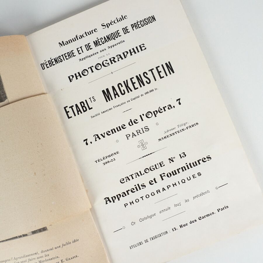 - Manufacture spéciale d'ébénisterie & de de mécanique de précision appliqués aux appareils & accessoires pour la photographie. Etablissements Mackenstein, Paris. Catalogue n°13. In-8 br.