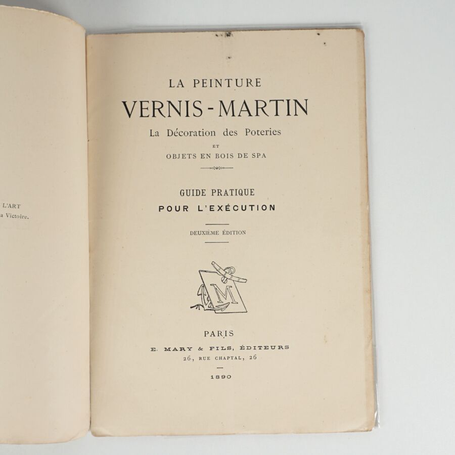 - La Peinture Vernis-Martin. La Décoration des Poteries et objets en bois de spa. Paris, Mary et fils, 1890. In-8 broché, couv. imprimée. Rare. Ex-libris collection Kilian Fritsch.