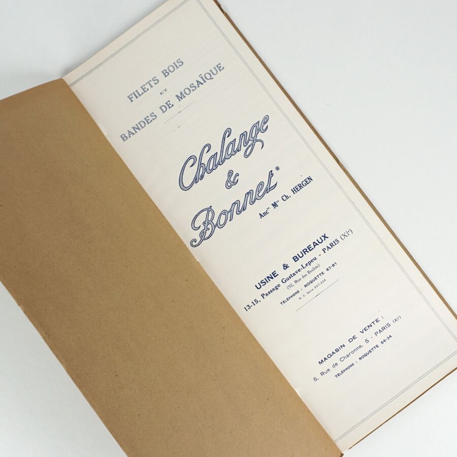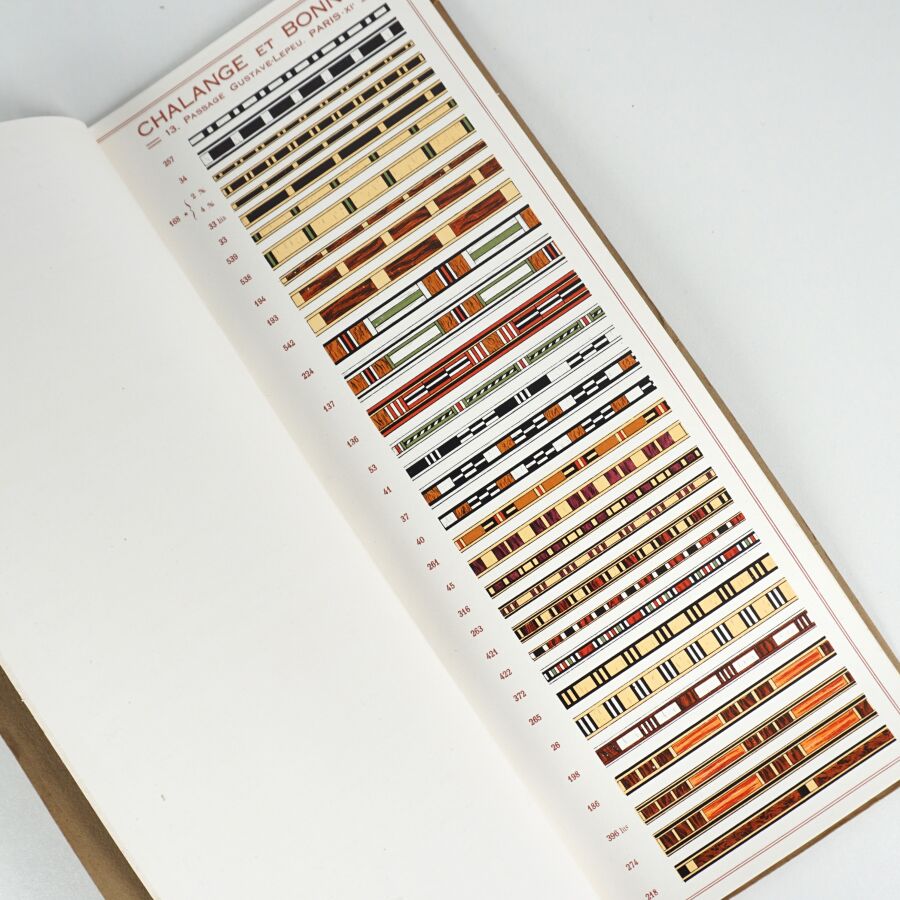 - Filets bois et bandes de mosaïque. Chalange & Bonnet. Paris, sd. In-4 étroit broché, cordelette. Nombreuses reproductions couleurs de types de frise en marqueterie.