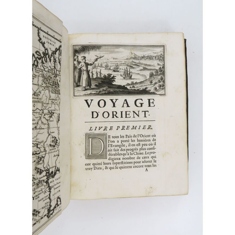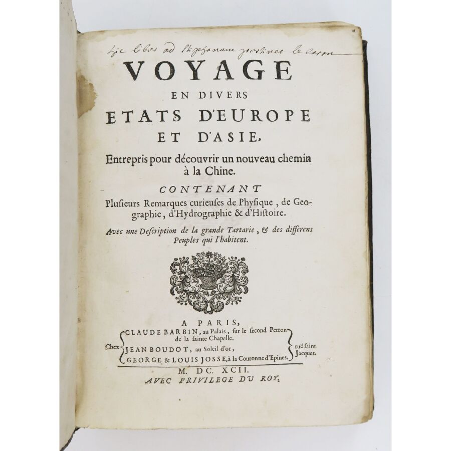 Asie - AVRIL (Philippe). Voyage en divers etats d'Europe et d'Asie, entrepris pour découvrir un nouveau chemin à la Chine. Contenant plusieurs remarques curieuses de physique, de geographie, d'hydrographie & d'histoire. Avec une description de la grande Tartarie, & des différens peuples qui l'habitent. Paris, Barbin & Cie, 1692. In-4, veau granité, dos à nerfs orné, roulette dorée sur les coupes (reliure de l'époque).
