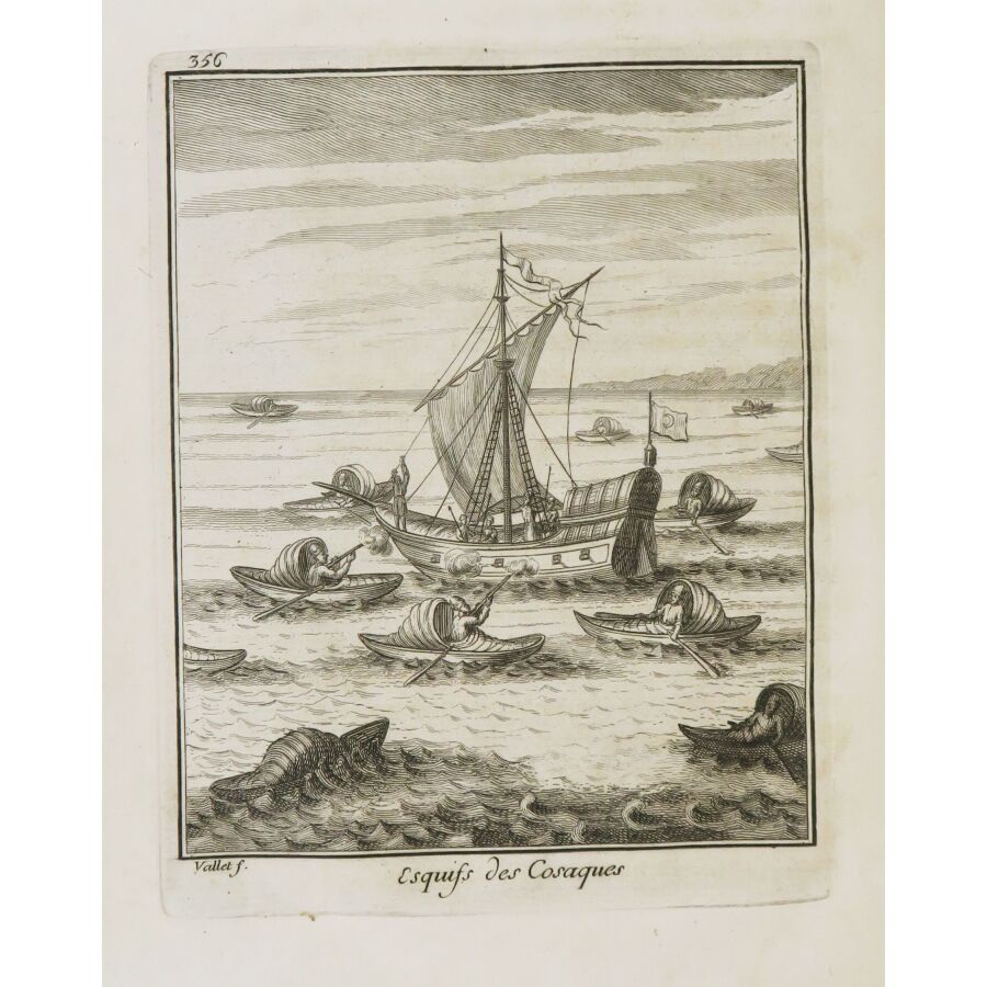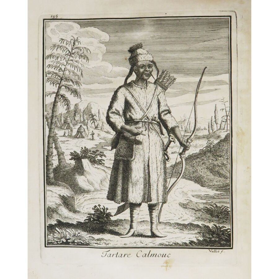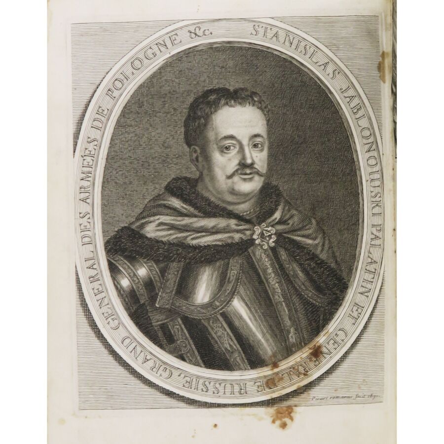 Édition originale illustrée d'un portrait de Stanislas Jablonowski gravé par Étienne Picart, d'une carte dépliante de la Sibérie et Kitay, de 6 vignettes en-tête, de 6 lettrines historiées et de 3 planches hors-texte par Vallet figurant des traîneaux, un tartare kalmouk et des esquifs cosaques.