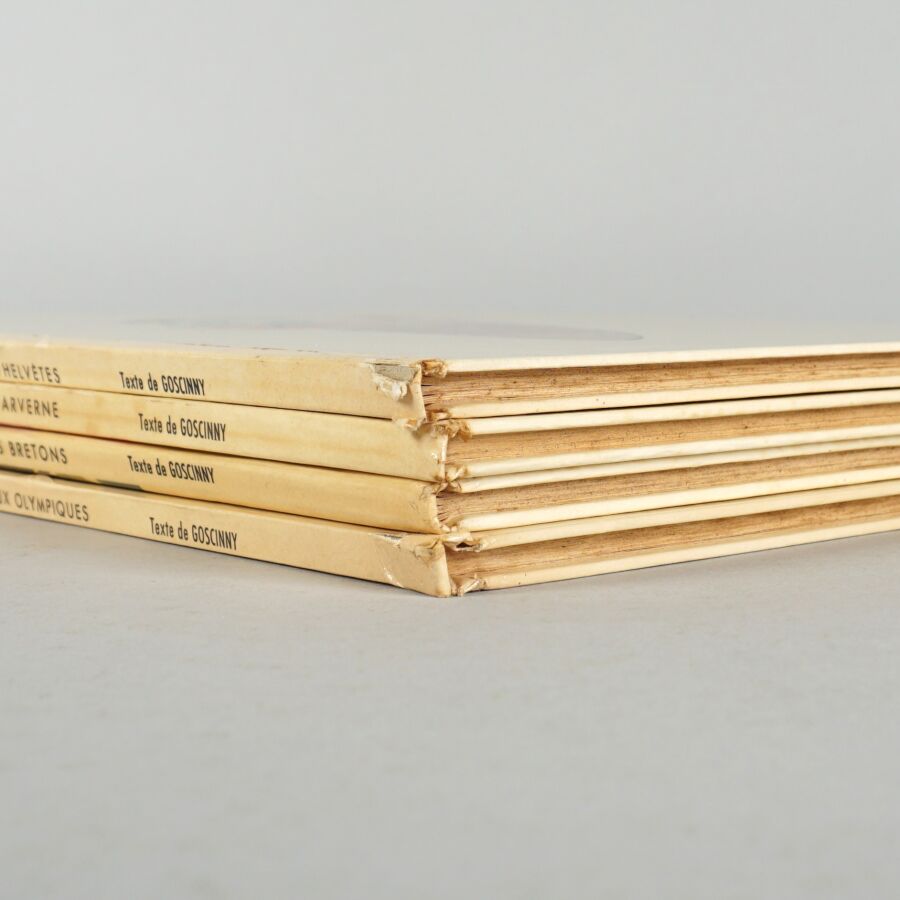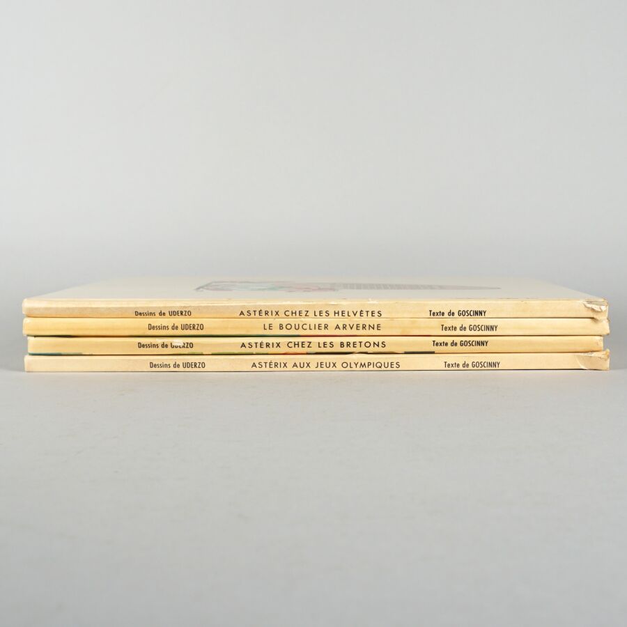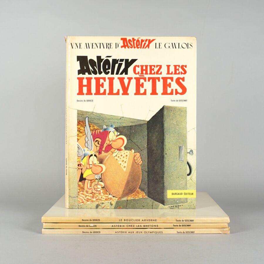 ASTÉRIX, éd. DARGAUD : Ensemble de 4 albums comprenant "Astérix chez les Helvètes" (première édition), "Astérix et le bouclier d'Arverne", "Astérix chez les bretons" et "Astérix aux Jeux Olympiques".