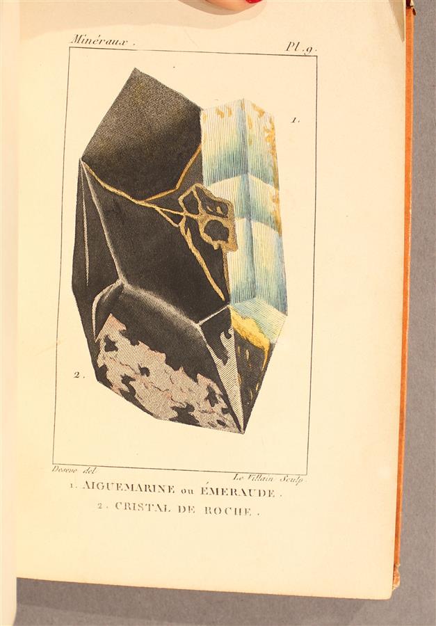 Atlas de minéralogie ou histoire naturelle des minéraux [] - Paris ; Roret, sans date - 1 volume petit In-12° - Quelques rousseurs éparses au texte - 40 planches hors-texte en couleurs - Reliure de l'époque cartonnage orange (mors largement fendus, coupes frottées, coins usés) - Dos lisse (coiffes absentes) - Pièce de titre papier noir.