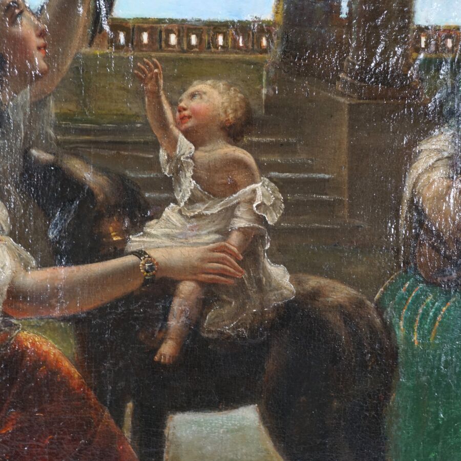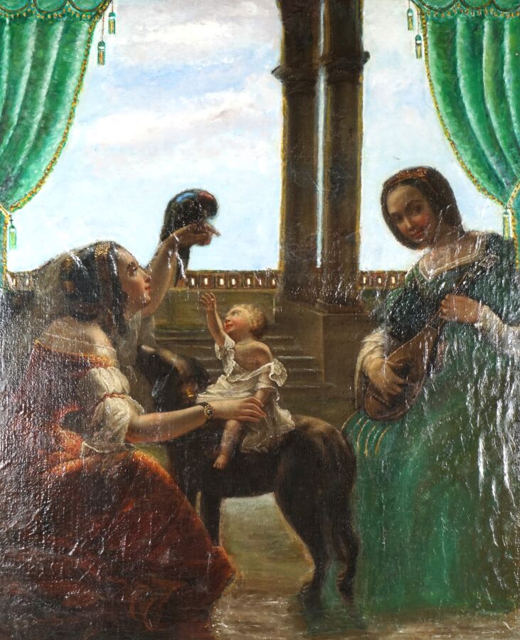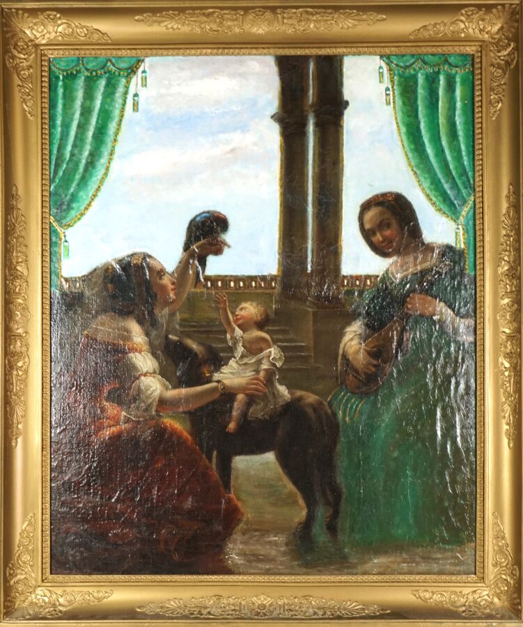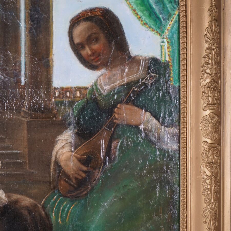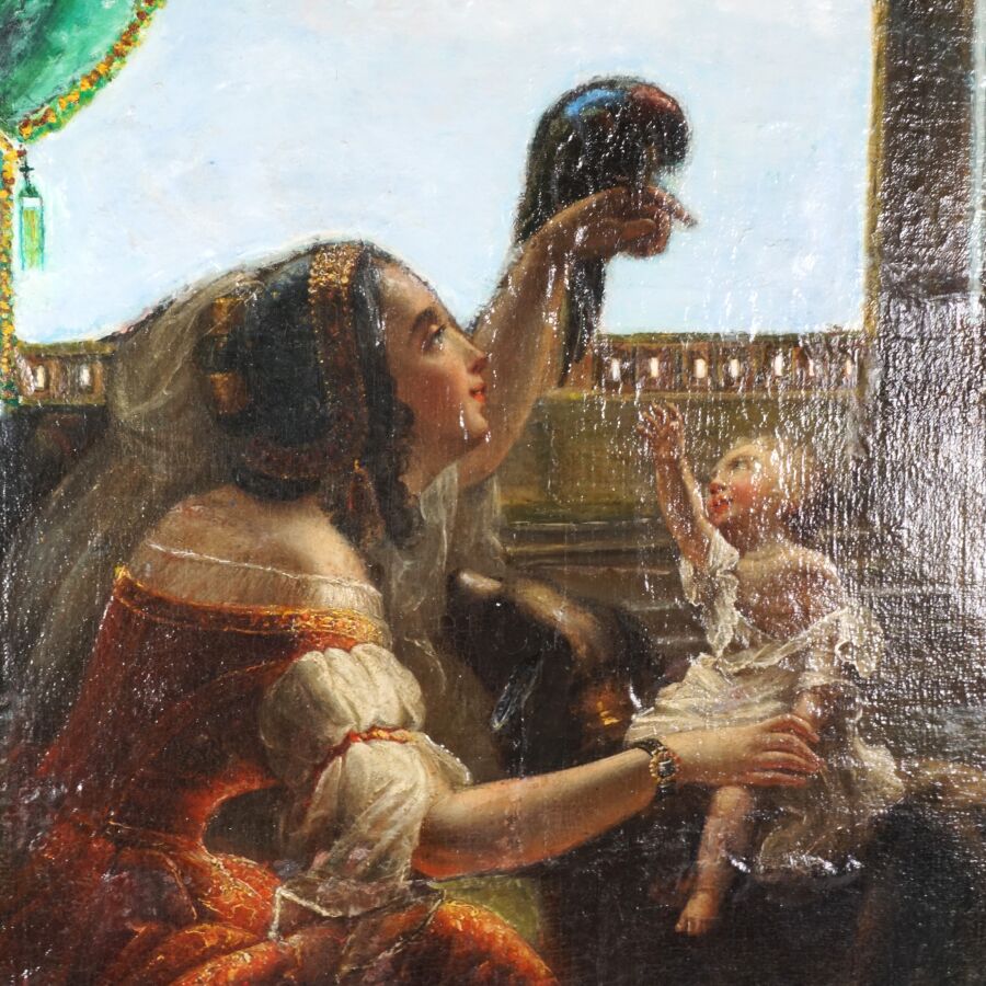 Attribué à Ernest Antoine HÉBERT (1817-1908), "Dans la loggia" circa 1900, huile sur panneau parqueté non signée, 80 x 65 cm.