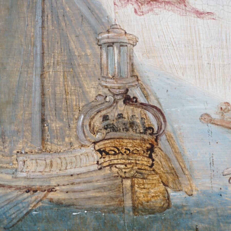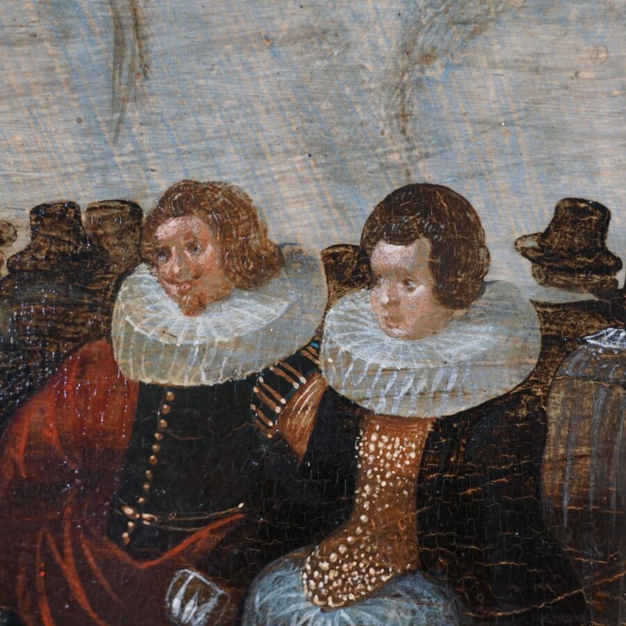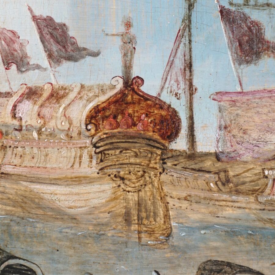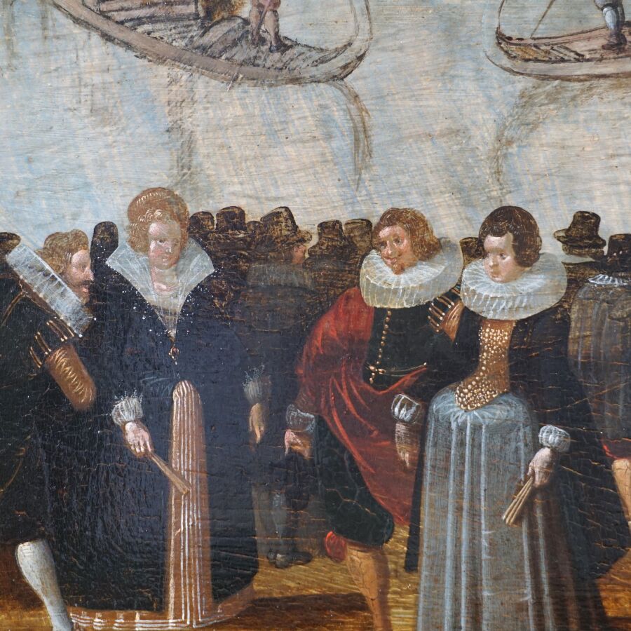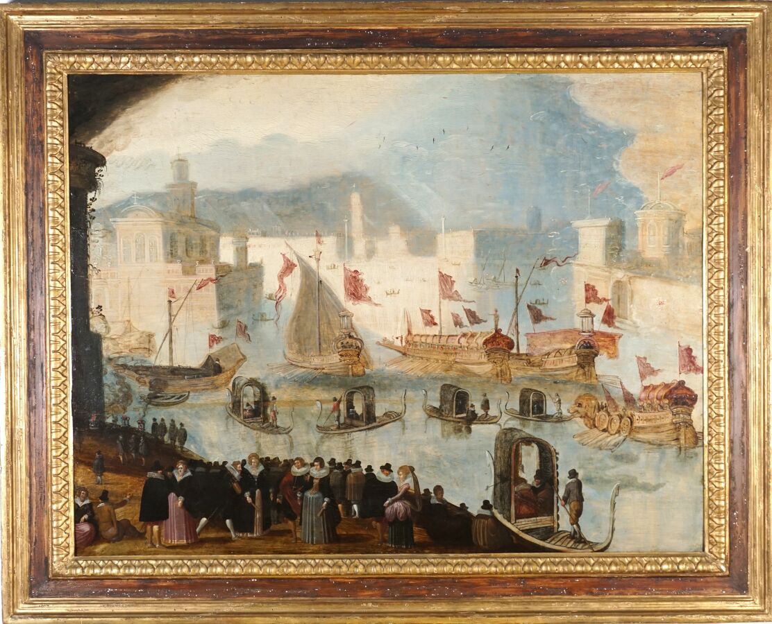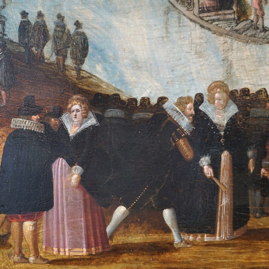 Attribué à Louis de CAULLERY (1565 - 1622), "La fête vénitienne", huile sur panneau de chêne, trois planches, renforcé, 73 x 95 cm (restaurations anciennes).