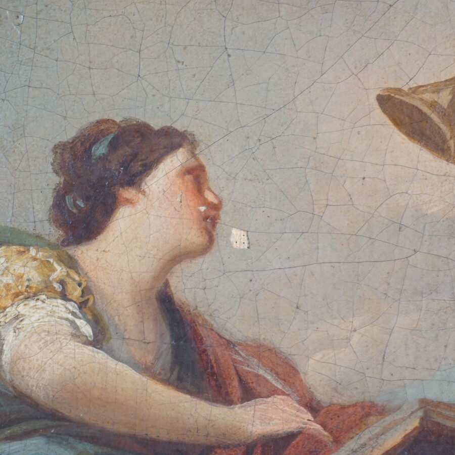 Attribué à Mariano ROSSI (1731-1807), "L'allégorie du temps dans un cercle peint", huile sur toile, sans cadre, 41 x 37 cm (petit manque au centre).