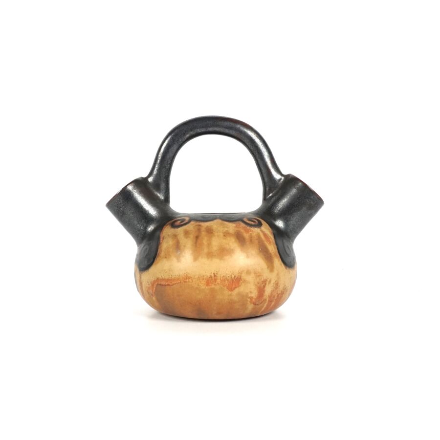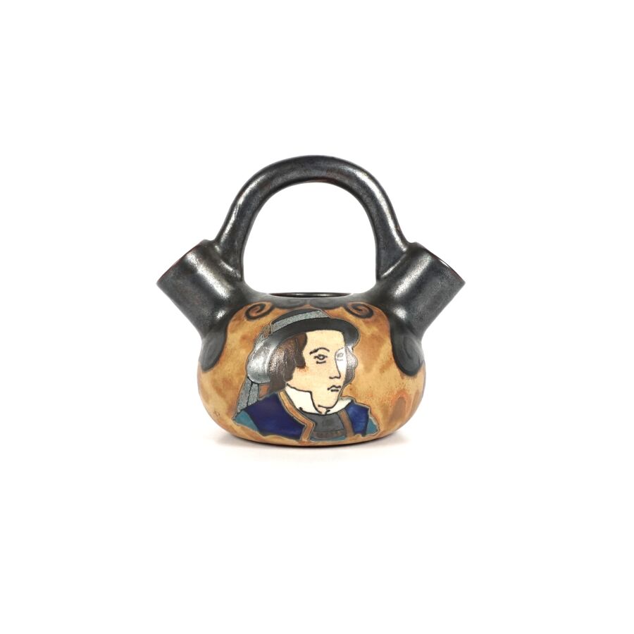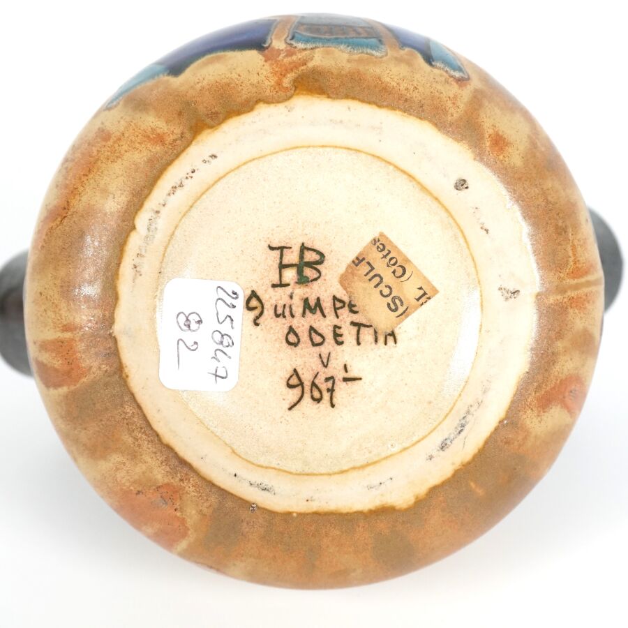 Attribué à Paul FOUILLEN (1899-1958) - ODETTA - HB QUIMPER : Verseuse à deux cols en grés émaillé polychrome à décor d'un portrait de jeune breton, signé et numéroté du peinteur 967 sous la base, H. 14 cm.