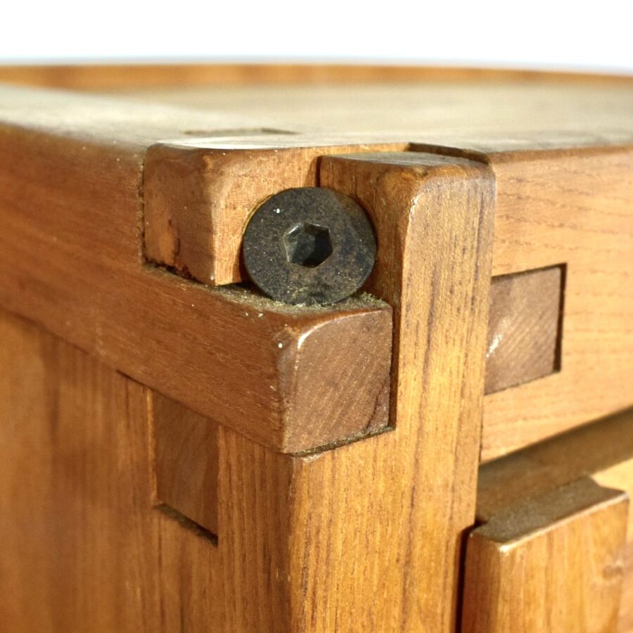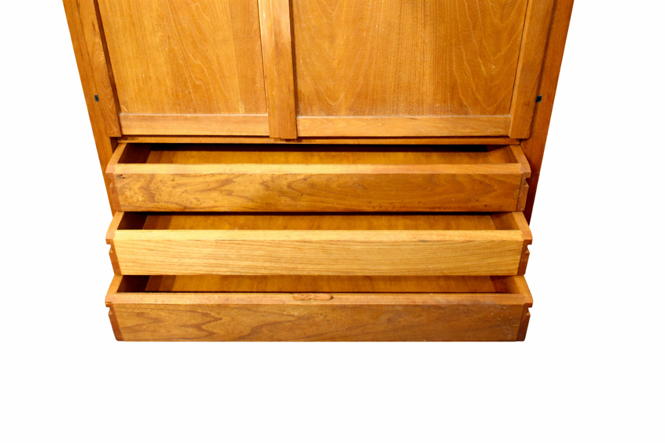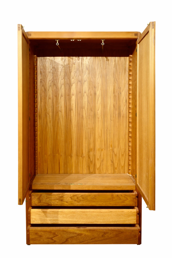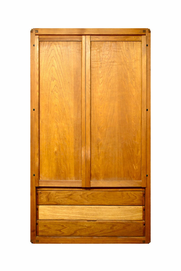 Attribuée à Pierre CHAPO (1927-1987) : Penderie en orme massif, Haut. 188 cm. Larg. 104 cm, Prof. 43 cm. (rayures, usures, manque les étagères)