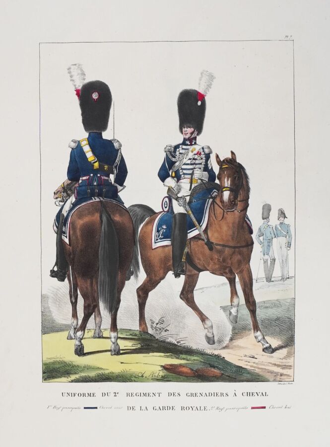 Elle passe en revue les uniformes de la garde royale (grenadiers, voltigeurs, soldats du centre, cuirassiers, dragons, chasseurs, lanciers, hussards, artillerie, gendarmes d'élite et infanterie suisse), des régiments d'infanterie de ligne et légère, des carabiniers de Monsieur, des cuirassiers, des dragons, des chasseurs, des hussards, de l'artillerie, des pontonniers, des régiments du Génie et des escadrons du train des équipages militaires.