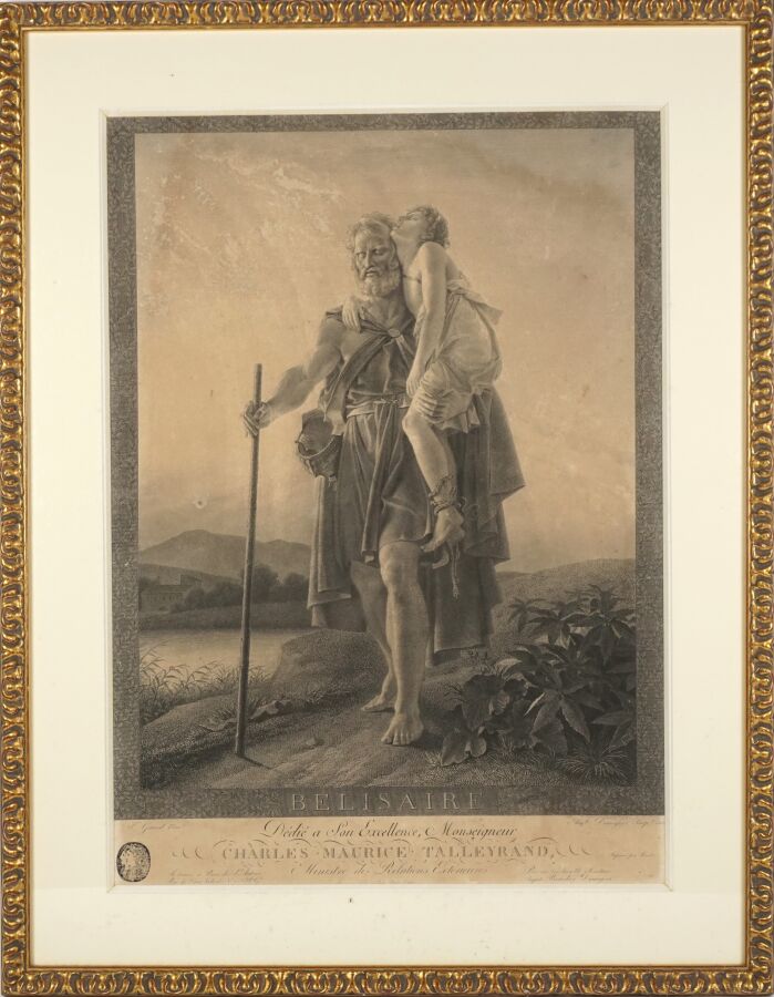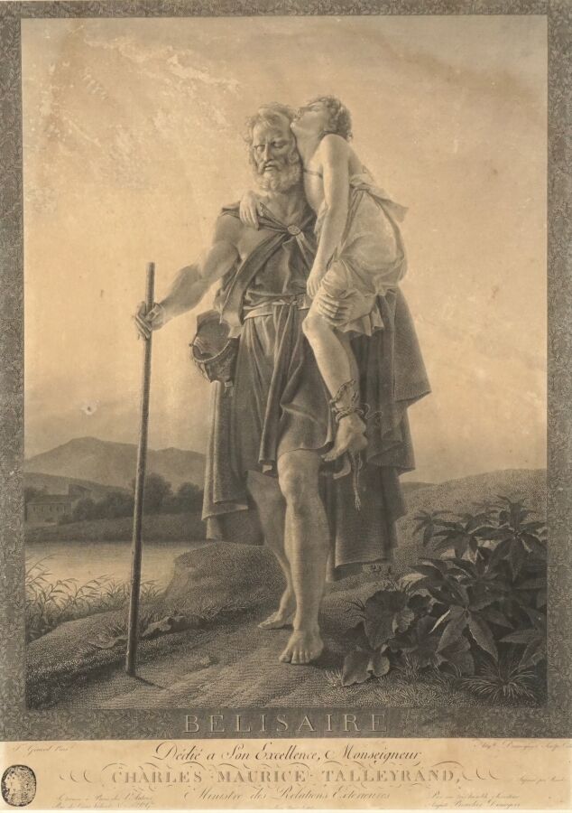 Auguste Gaspard Louis DESNOYERS (1779-1857), d'après François GÉRARD (1770-1837), "Bélisaire", gravure en noir dédiée à son excellence Charles Maurice Talleyrand, 52 x 37.2 cm (à vue) (petites taches, papier jauni).