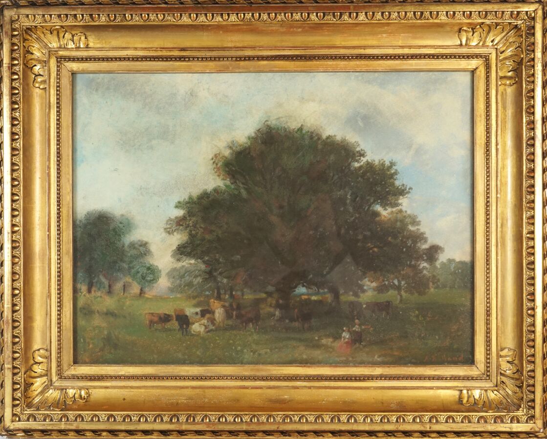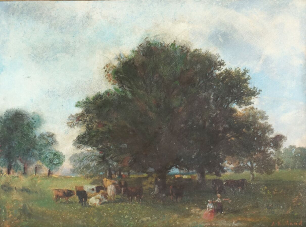 Auguste ROLLAND (1797-1859), "Le troupeau", pastel signée en bas à droite, 40 x 55 cm (à vue).