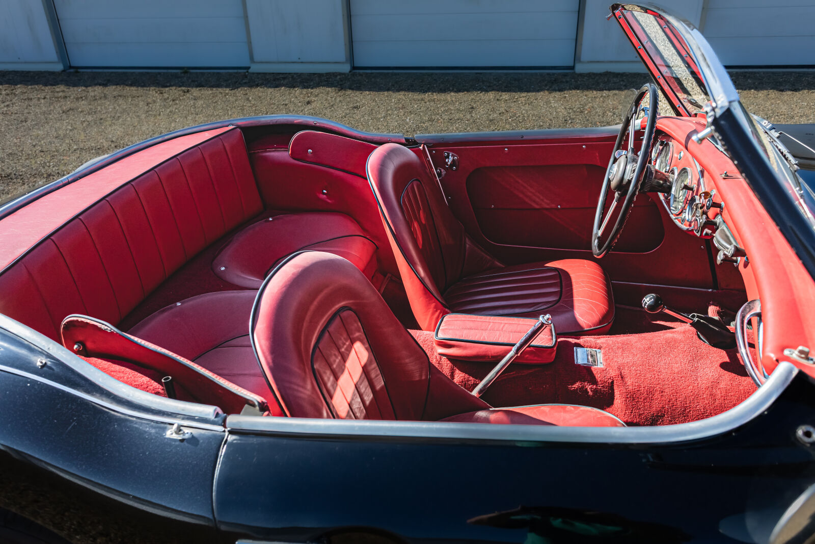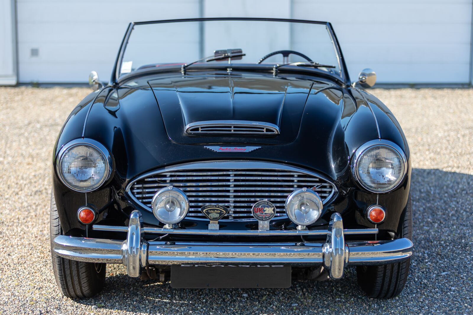 AUSTIN HEALEY type 100 Six BN4 du 01/01/1957, cabriolet 2 portes, 4 places. Carte grise française de collection avec contrôle tech. (étrier ARD et amortisseur AVD à vérifier) n° de série BN4LO42112, 12548 miles au compteur, voiture en bon état ayant été restaurée en grande partie, conforme à l'origine régulièrement entretenue. Carrosserie très saine, peinture de couleur noire, flancs bordeaux. Le pare-brise est en bon état ainsi que les phares et les feux, 2 longues portés ont été ajoutés à l'avant.. Tous les chromes sont très corrects. La sellerie de cuir rouge est parfaite ainsi que les panneaux de portes et les moquettes. Le tableau de bord est bien complet de ses instruments de contrôle qui fonctionnent. Les arceaux de capote sont présents mais la capote est à prévoir, un couvre tonneau se trouve dans le coffre. Moteur 6 cylindres en ligne de 3 litres, 15 CV en bon état de marche, entièrement revu, alimenté par 2 carburateurs SU, Boite 4 vitesses manuelle avec over drive. Pneus en bon état montés sur des jantes à rayons peintes.
