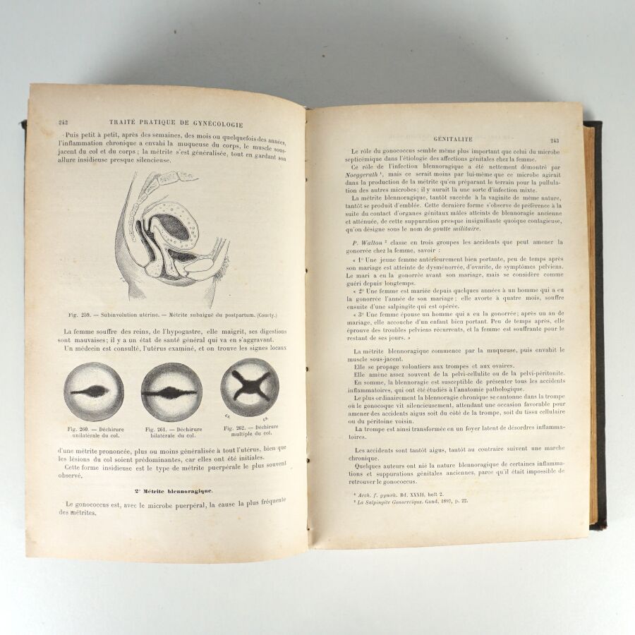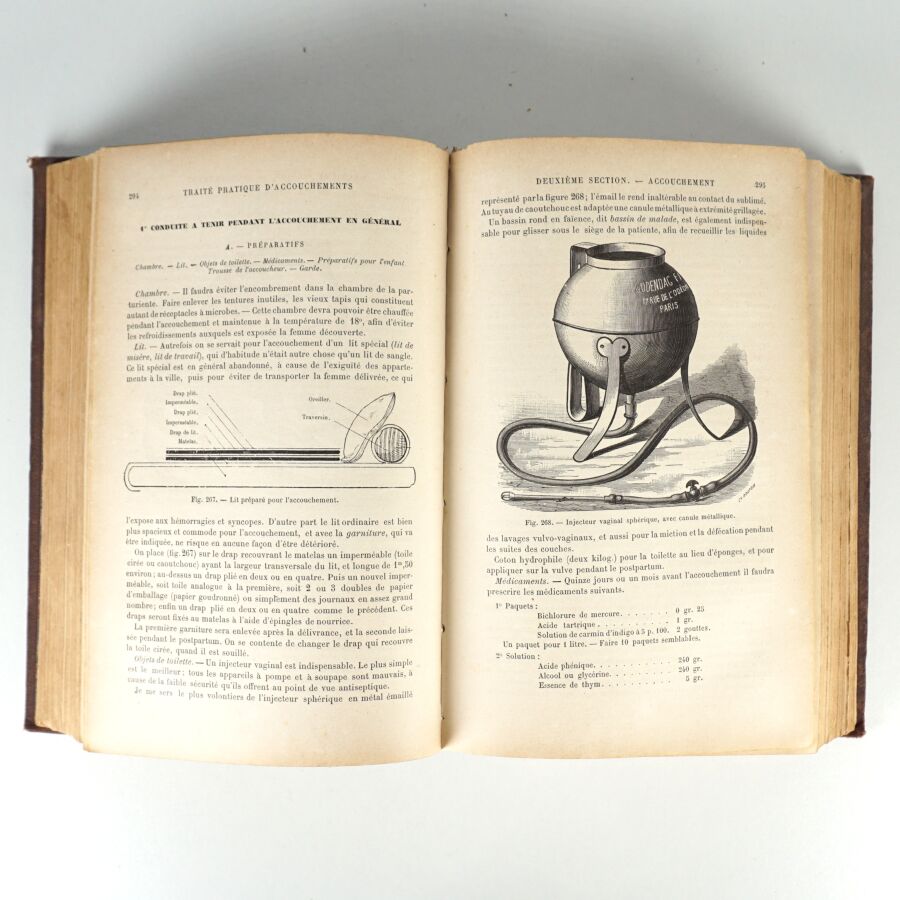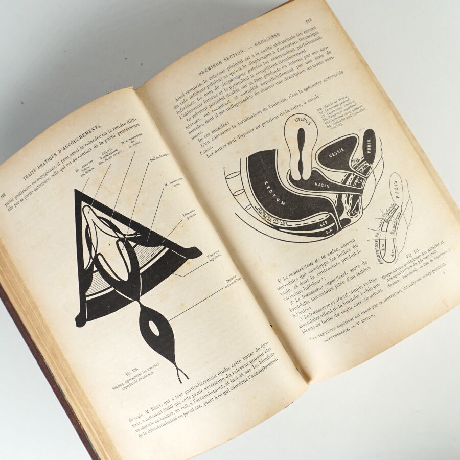 On y joint du même auteur, même éditeur : Traité pratique d'accouchements. Avec 558 figures dans le texte. 1894. Qqs frottés, taches claires sur les plats.
