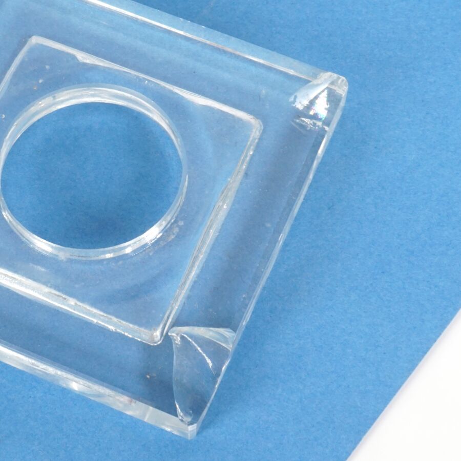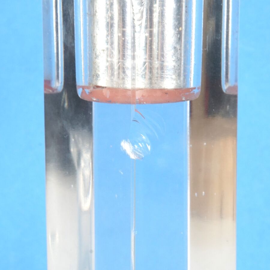 BACCARAT : Candélabre à deux bras de lumière en cristal incolore moulé, avec ses bobèches de forme carrée, signée du tampon de la Manufacture dessous, Dim.