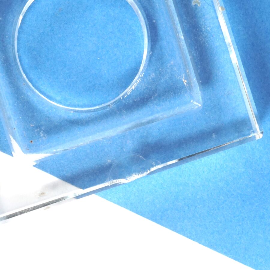 On joint une paire de bougeoirs de forme quadrangulaire dans le même goût, non signés (éclats).