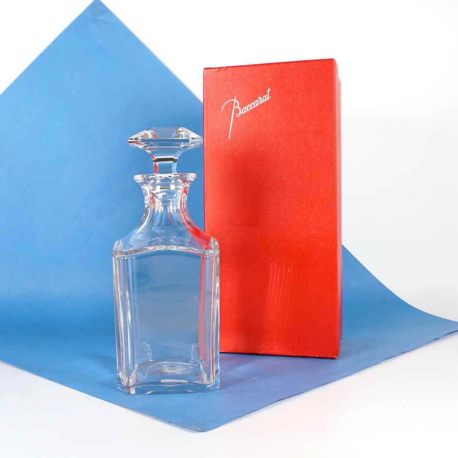 BACCARAT : Carafe à whisky en cristal taillé, marquée du cachet de la manufacture dessous, présentée en boîte d'origine, H. 24 cm.