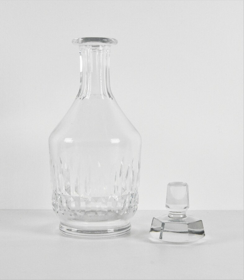BACCARAT : Carafe en cristal taillé modèle "Canterbury" avec son bouchon d'origine numéroté 884, signé, circa 1940, H. 26 cm.
