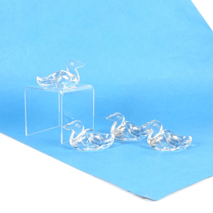 BACCARAT : Ensemble de quatre salerons en cristal représentant des cygnes, signés dessous, 4 x 7.5 cm.