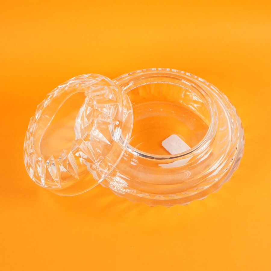 BACCARAT : Petite bonbonnière, cristal, à décor de pointe, marqué du tampon de la manufacture dessous, H. 7 cm. Diam : 13 cm.
